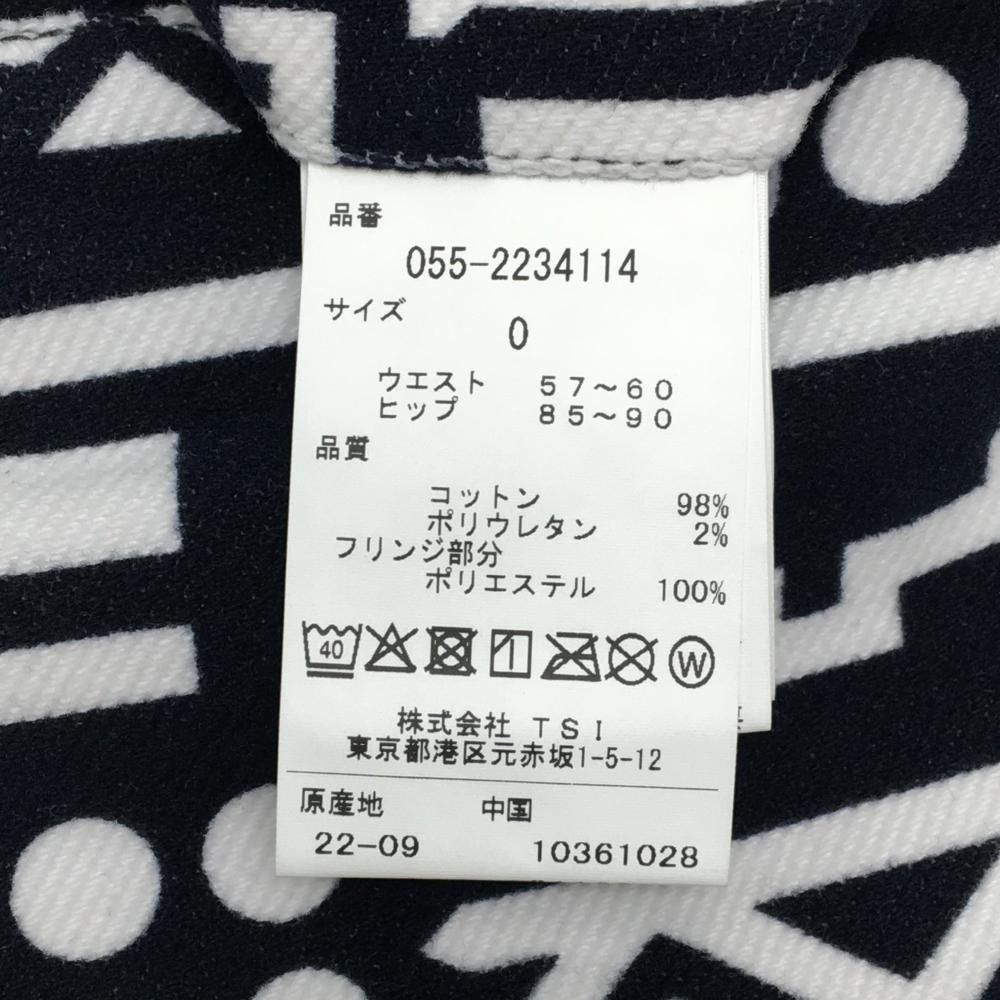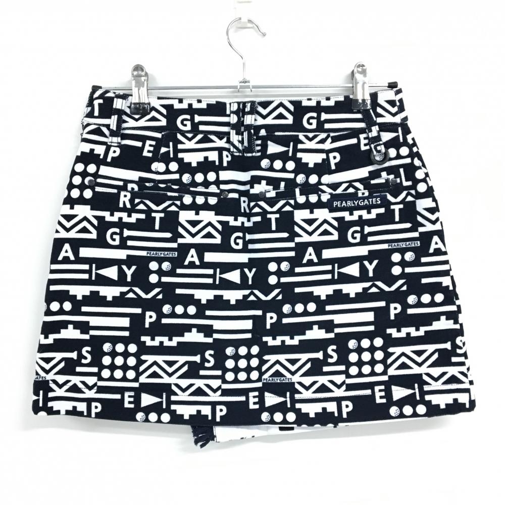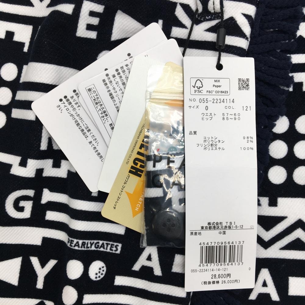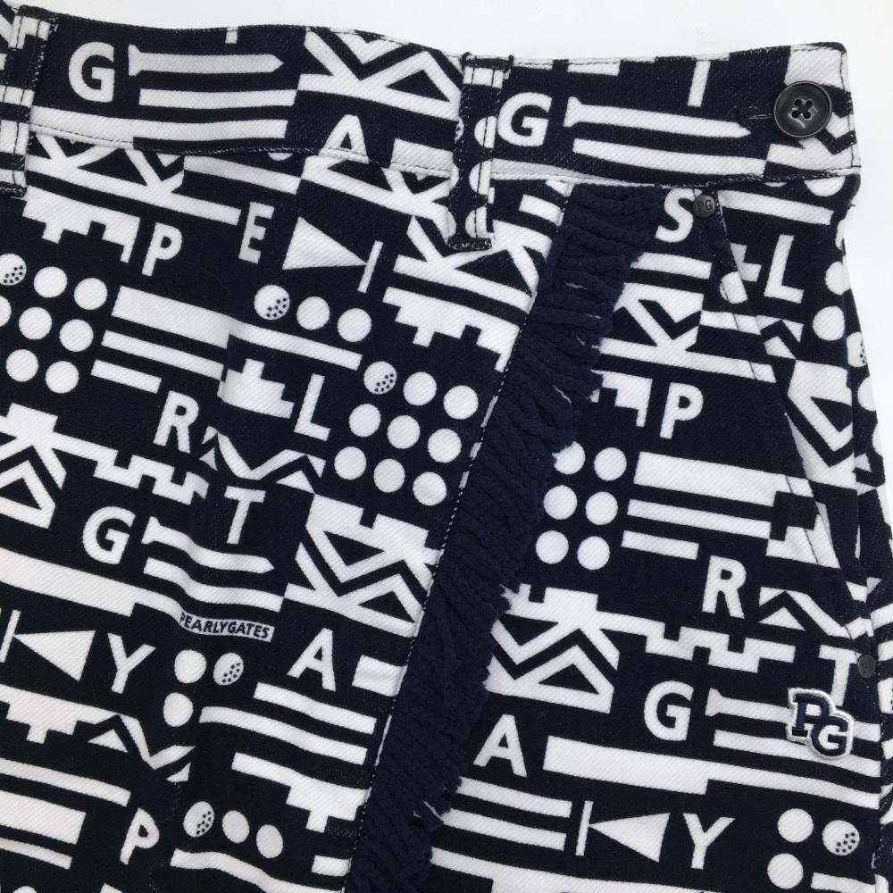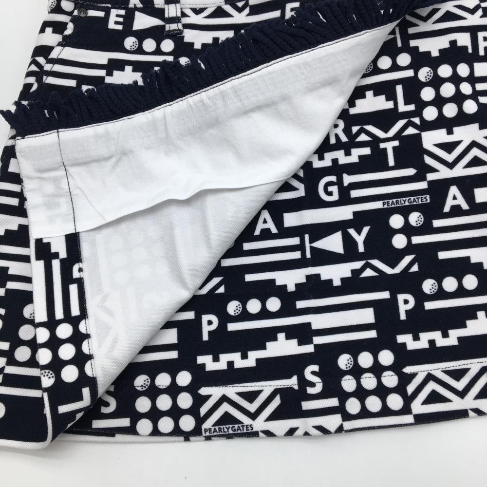 【新品】パーリーゲイツ スカート ダークネイビー×白 総柄 フリンジ ストレッチ レディース 0(S) ゴルフウェア PEARLY GATES
