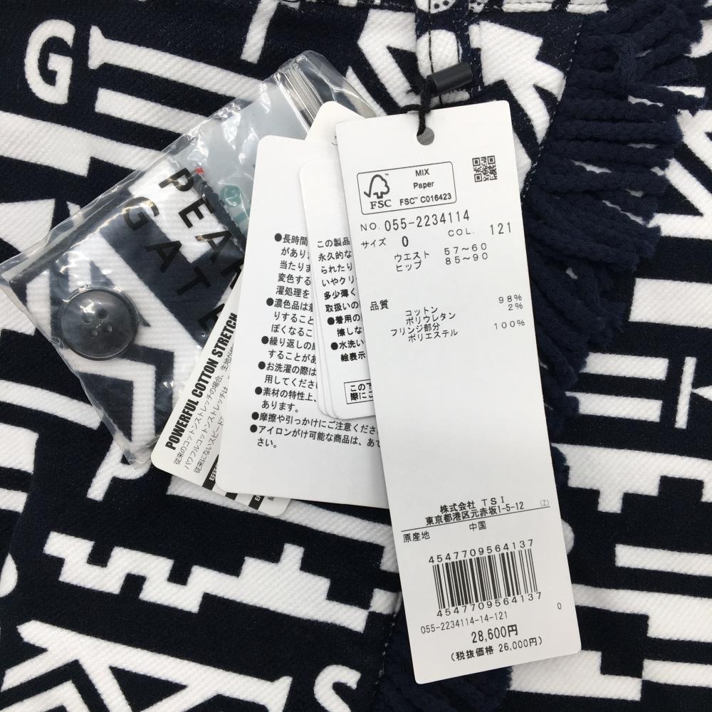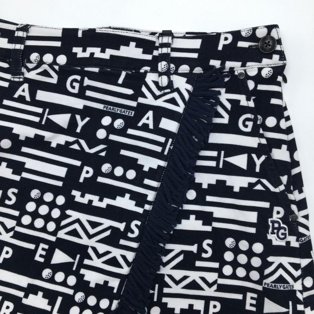 【新品】パーリーゲイツ スカート ダークネイビー×白 総柄 フリンジ ストレッチ レディース 0(S) ゴルフウェア PEARLY GATES