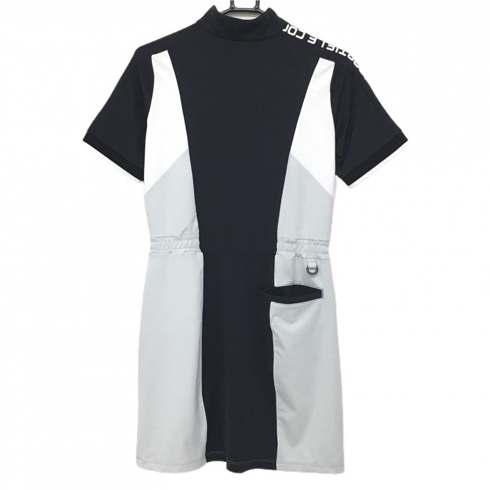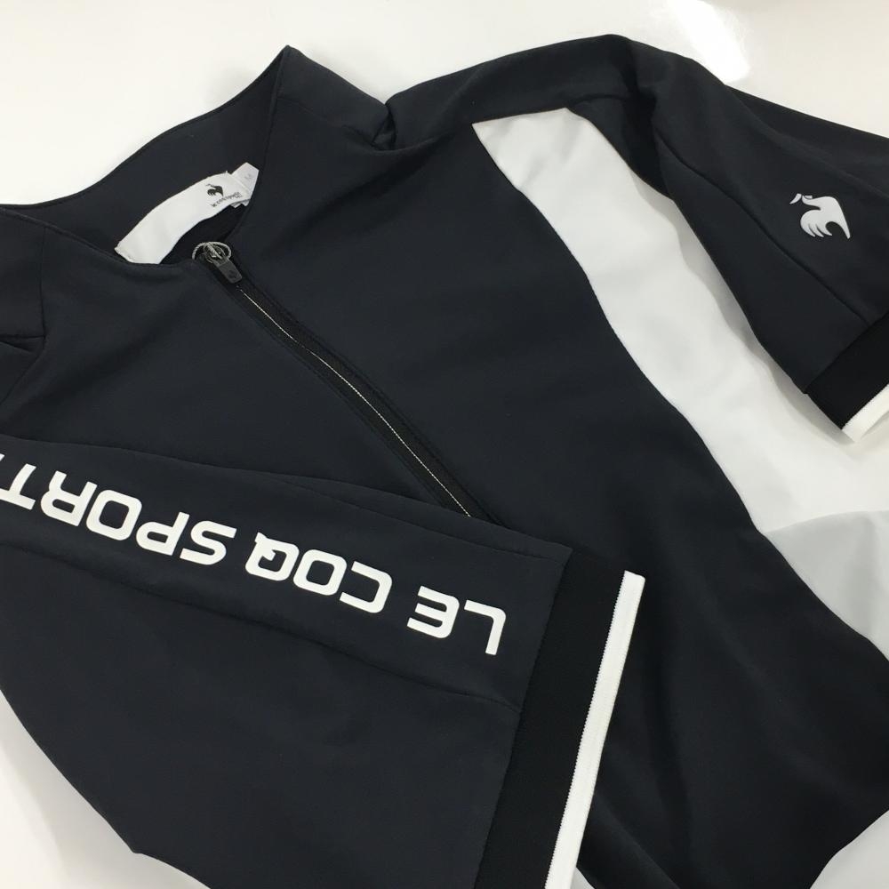 【新品】ルコックゴルフ 半袖ワンピース 黒×ライトグレー ハーフジップ ストレッチ レディース M ゴルフウェア le coq sportif