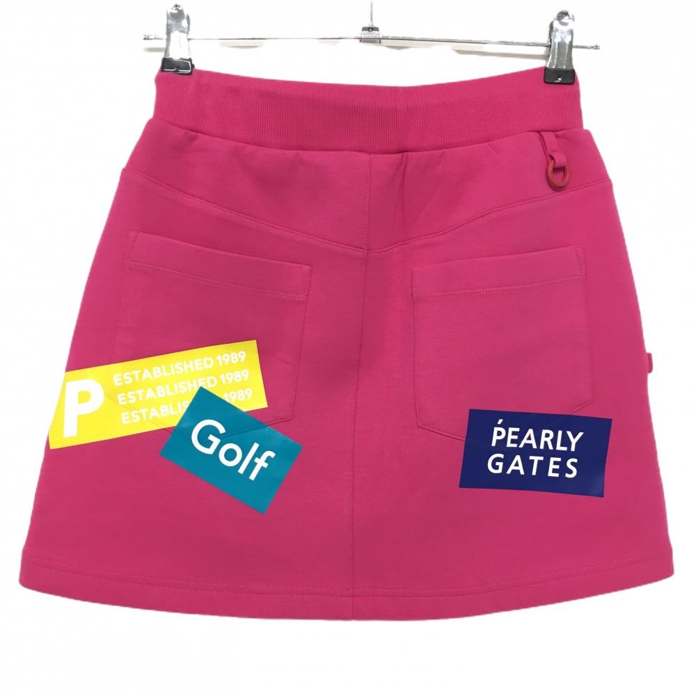 【新品】パーリーゲイツ スカート ピンク×マルチカラー 複数プリント ウエストゴム 調節紐 レディース 0(S) ゴルフウェア PEARLY GATES