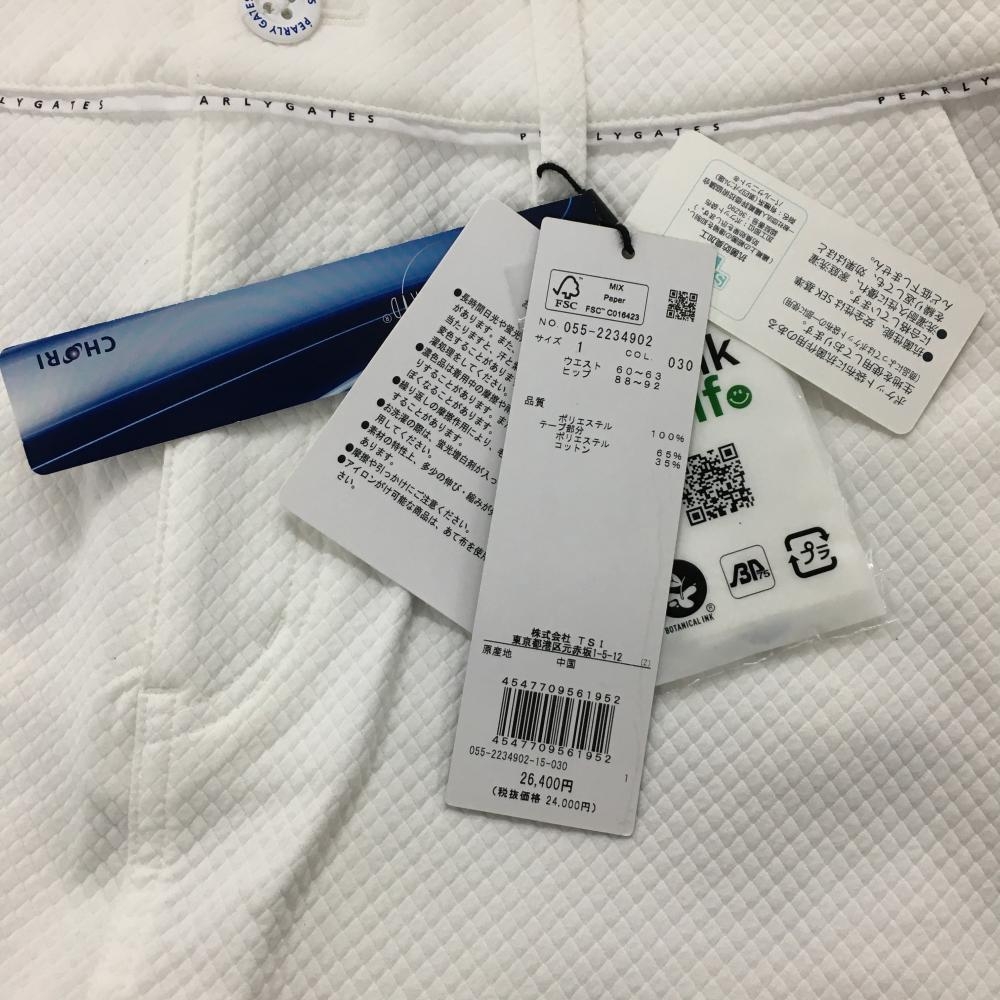【新品】パーリーゲイツ スカート 白 ダイヤ柄織生地 ロゴブルー レディース 1(M) ゴルフウェア PEARLY GATES