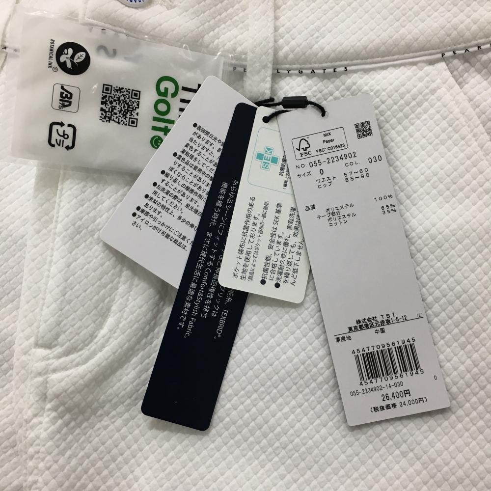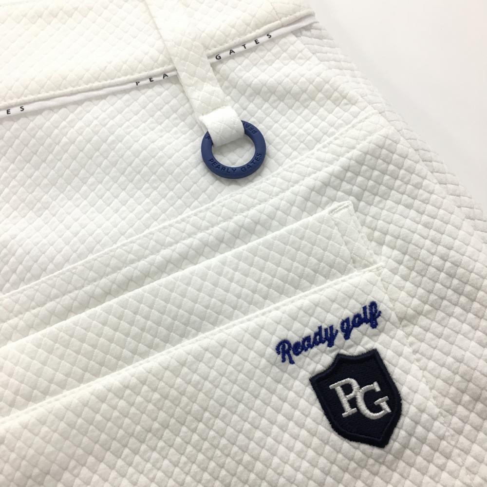 【新品】パーリーゲイツ スカート 白 ダイヤ柄織生地 ロゴブルー レディース 0(S) ゴルフウェア PEARLY GATES