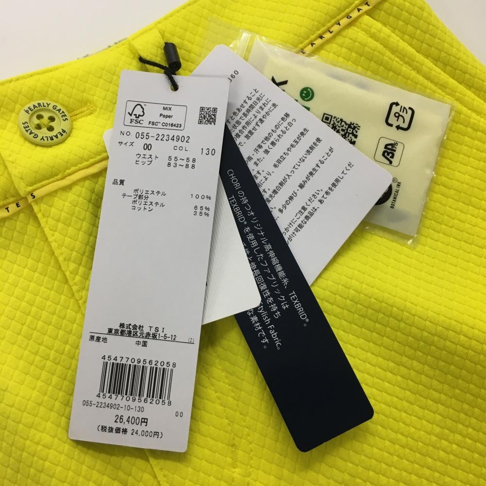 【新品】パーリーゲイツ スカート イエロー ダイヤ柄織生地 ロゴネイビー レディース 00(XS) ゴルフウェア PEARLY GATES
