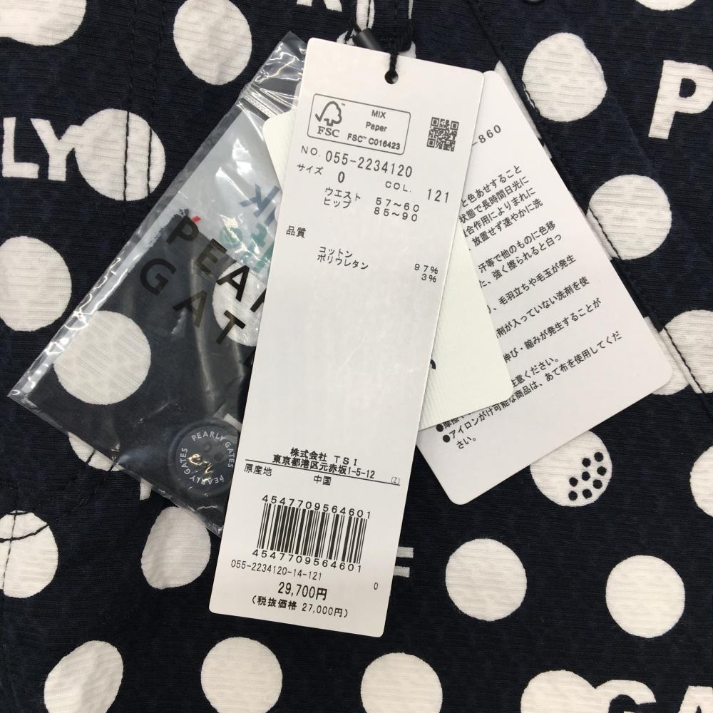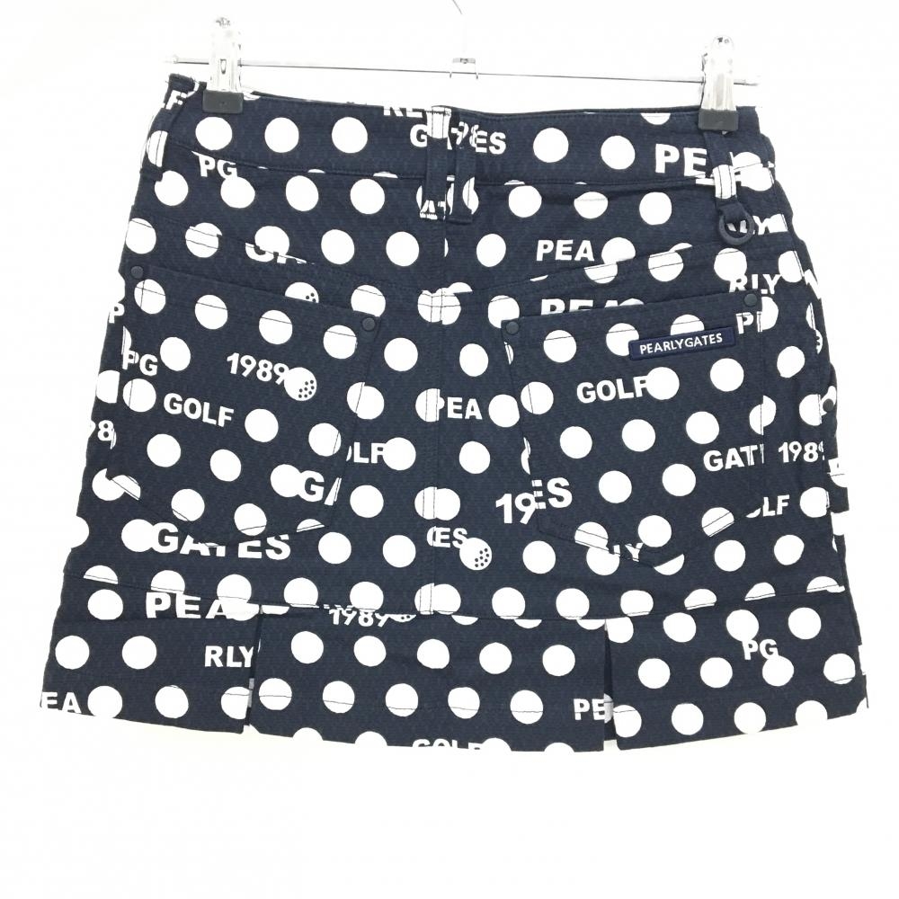 【新品】パーリーゲイツ スカート ダークネイビー×白 ドット柄 ロゴ 後ろ裾ボックスプリーツ レディース 0(S) ゴルフウェア PEARLY GATES