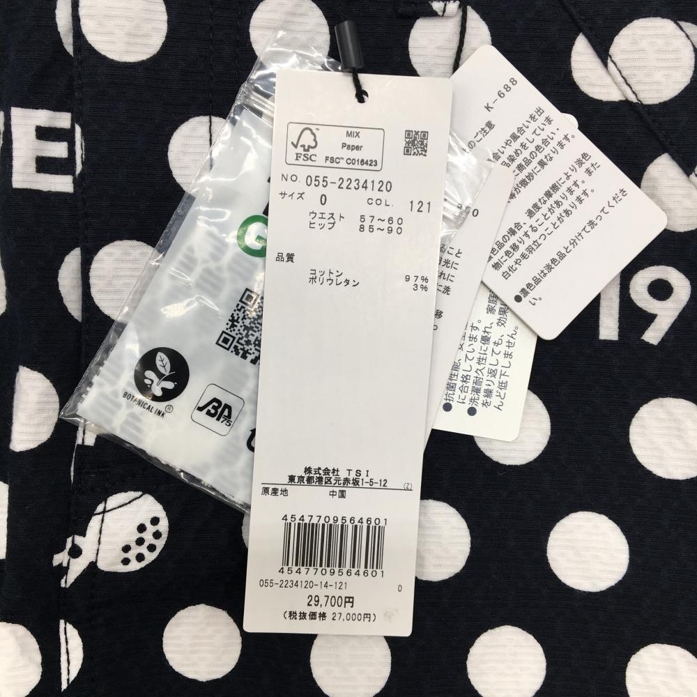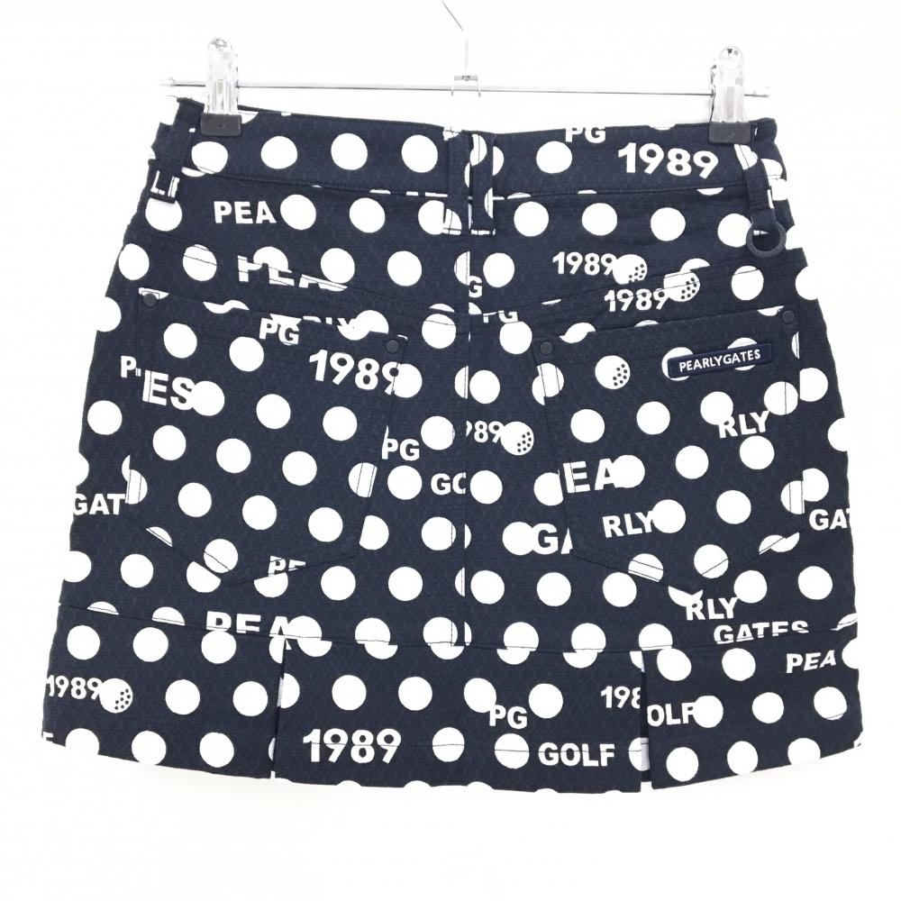 【新品】パーリーゲイツ スカート ダークネイビー×白 ドット柄 ロゴ 後ろ裾ボックスプリーツ レディース 0(S) ゴルフウェア PEARLY GATES