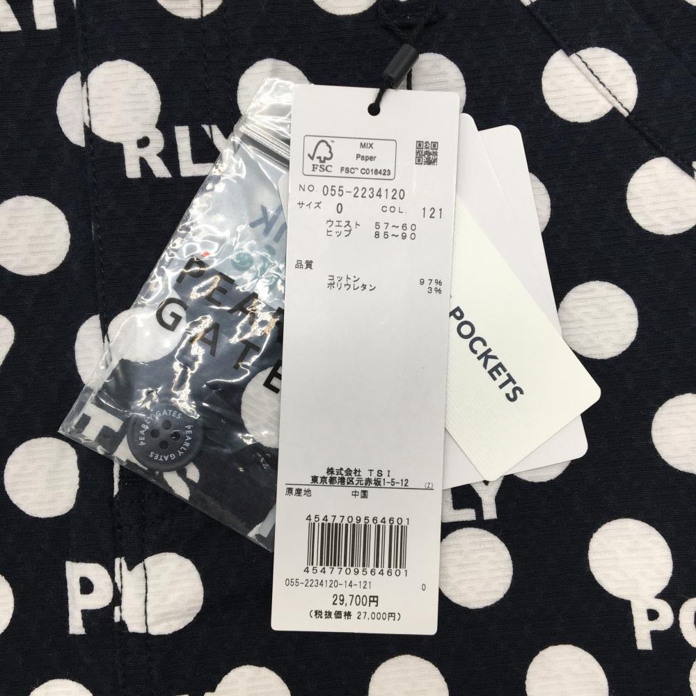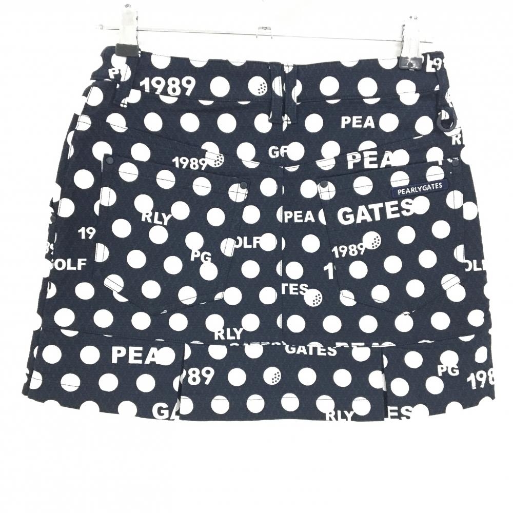 【新品】パーリーゲイツ スカート ダークネイビー×白 ドット柄 ロゴ 後ろ裾ボックスプリーツ レディース 0(S) ゴルフウェア PEARLY GATES
