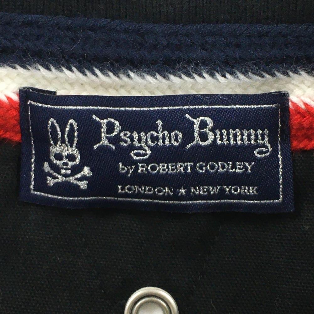 サイコバニー 半袖ポロシャツ ネイビー 襟裏ボーダー スカルラビット メンズ XL ゴルフウェア Psycho Bunny