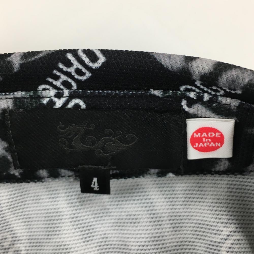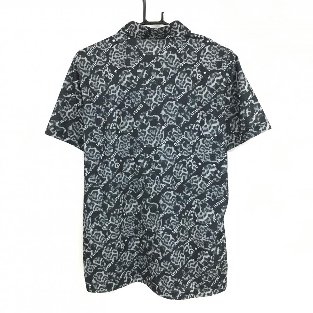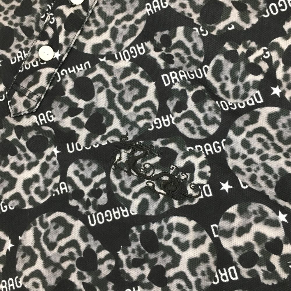 【超美品】ダンスウィズドラゴン 半袖ポロシャツ 黒×グレー ヒョウ柄スカル 総柄 メンズ 4(XL) ゴルフウェア Dance With Dragon