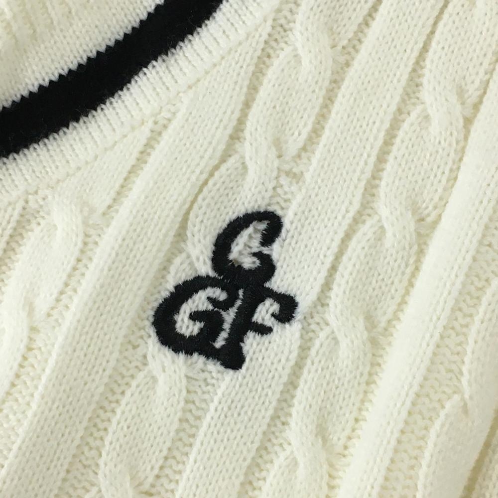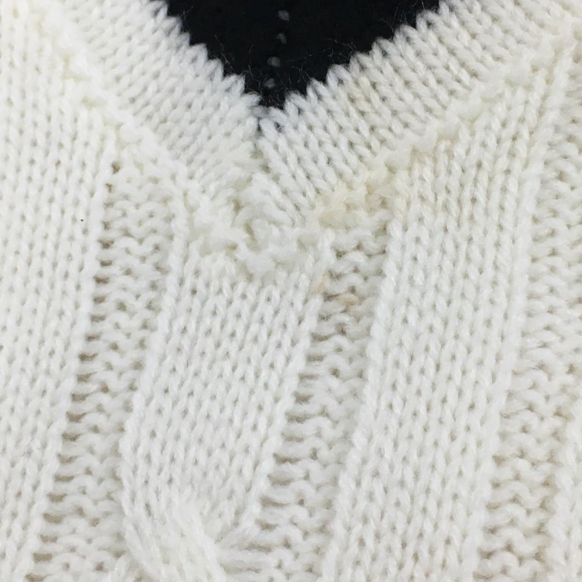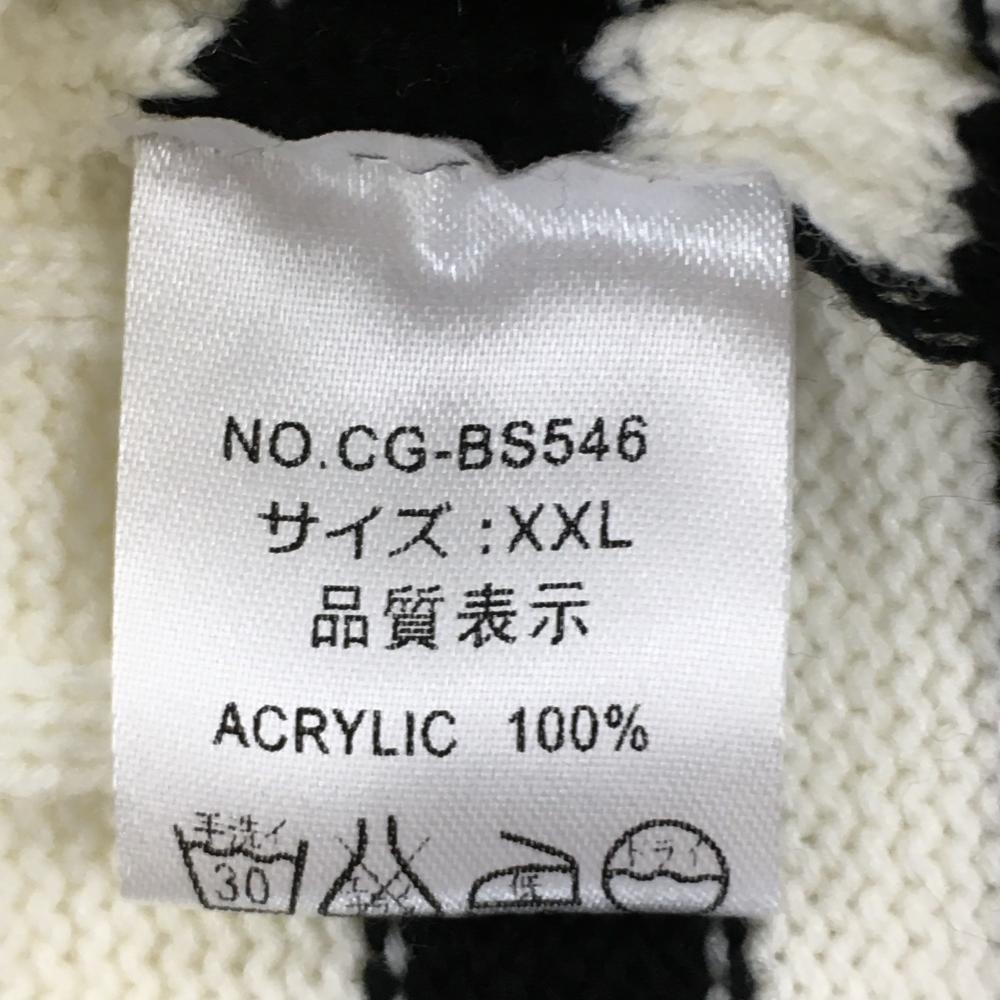 【美品】コモンゴルフ ニットベスト 白×黒 ケーブル編み Vネック メンズ XXL ゴルフウェア 大きいサイズ Comon Golf