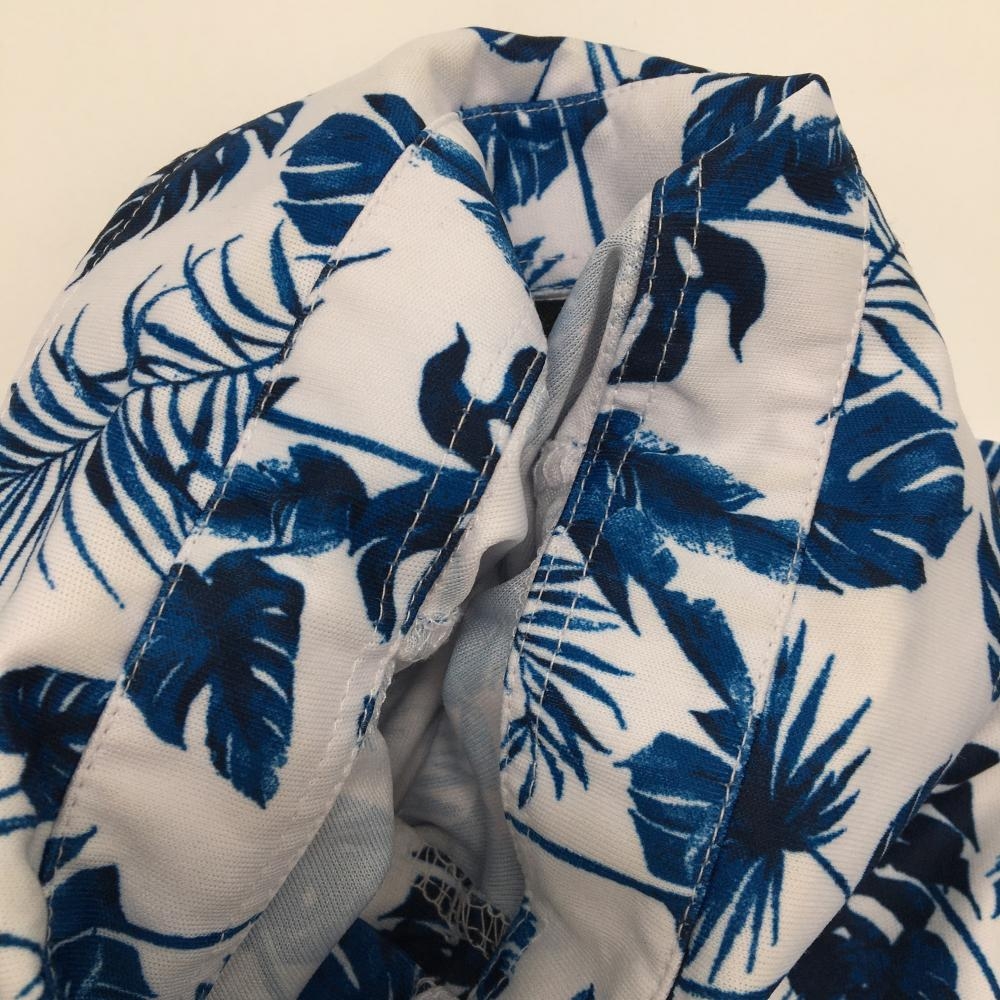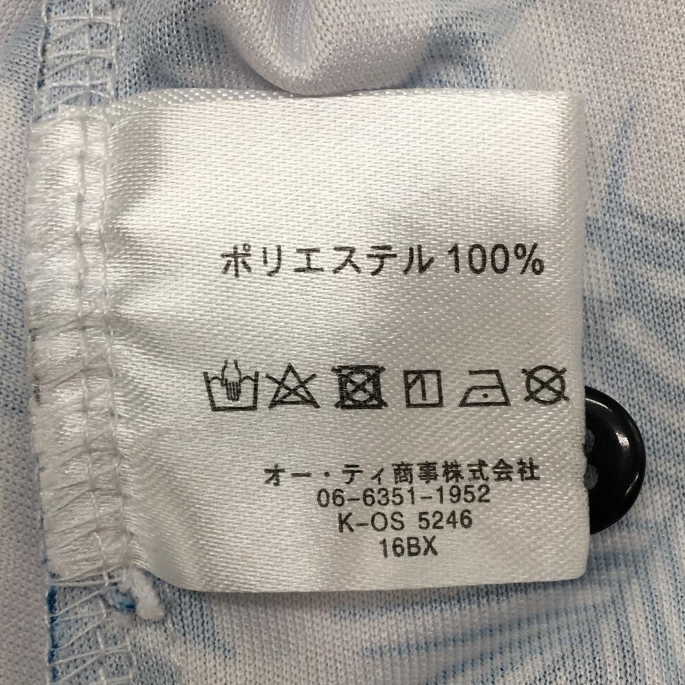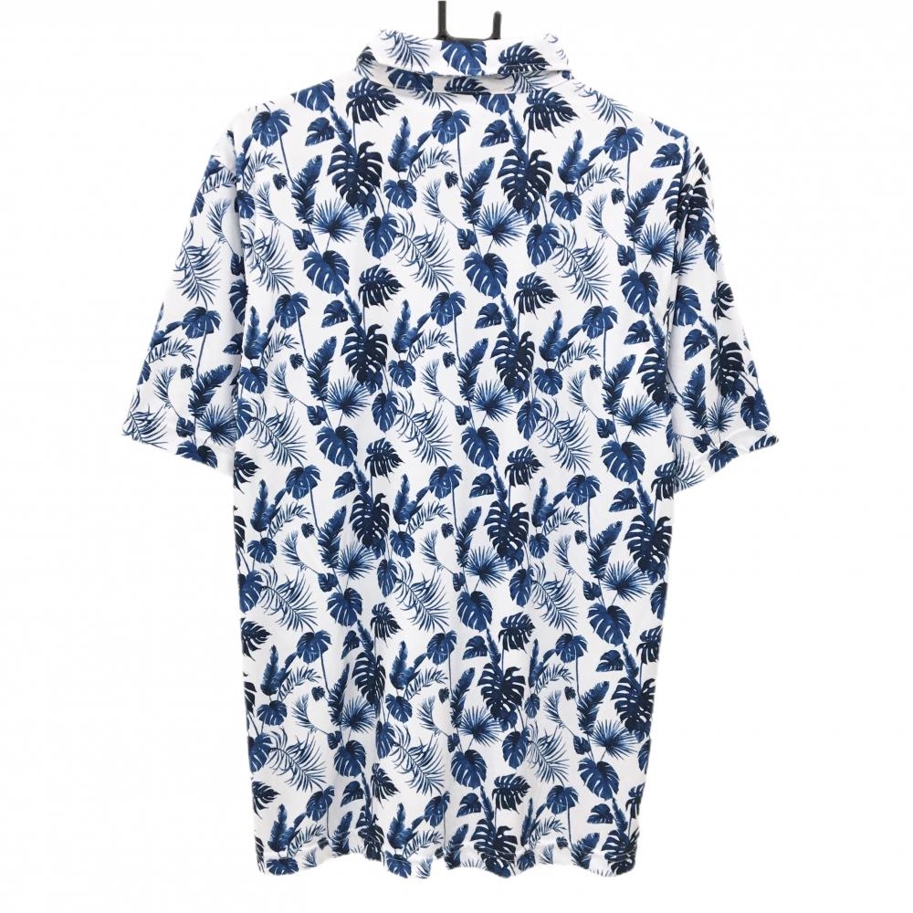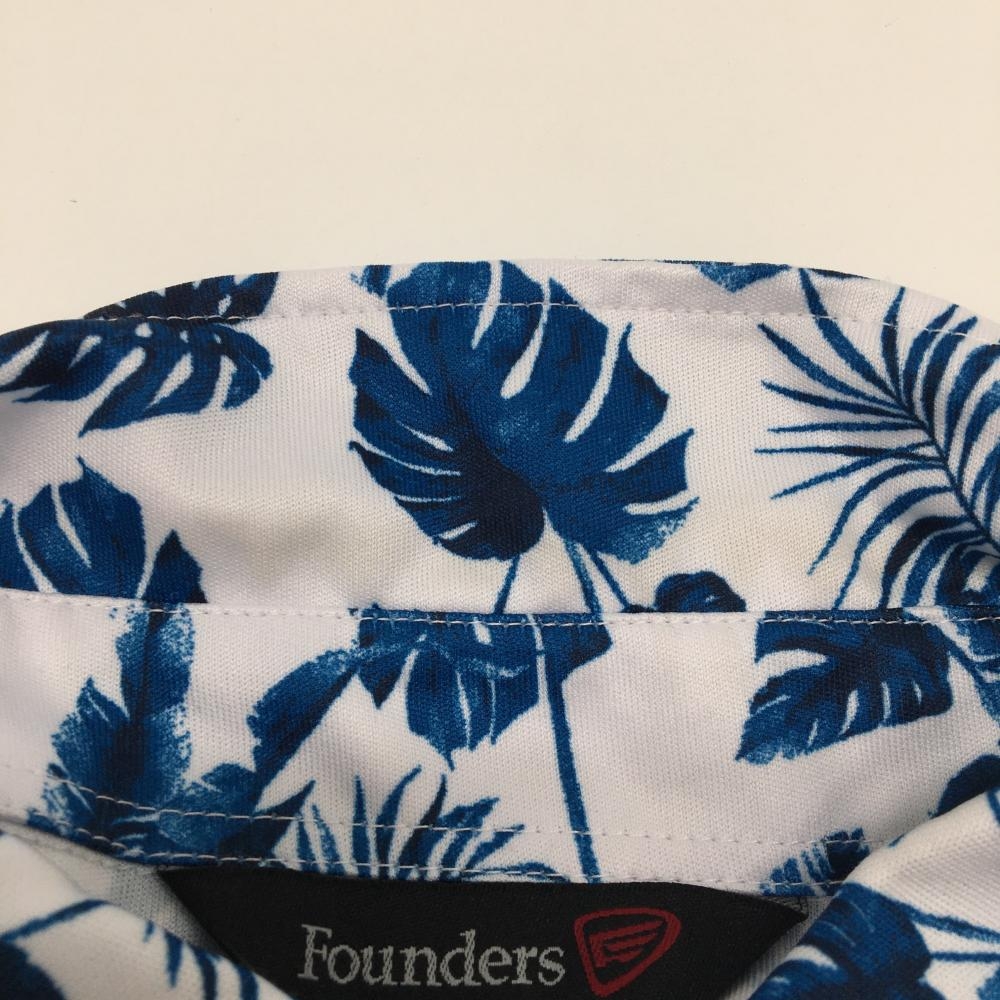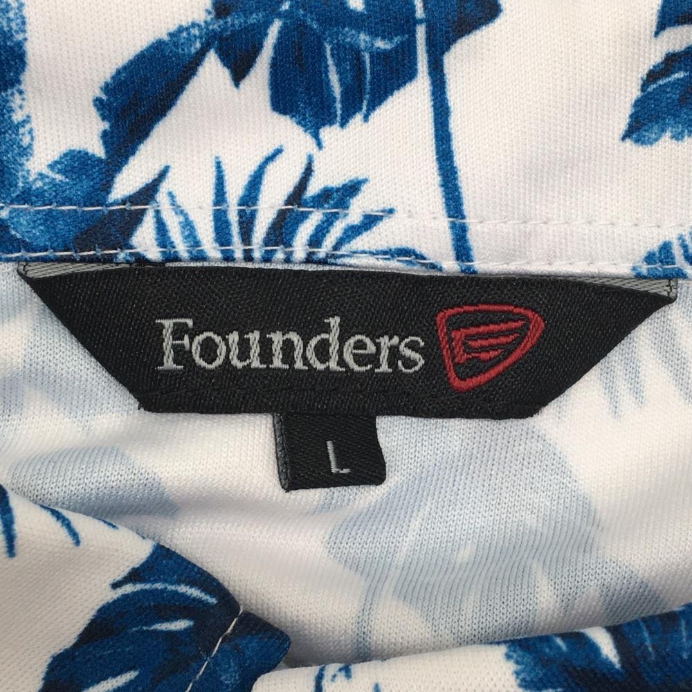 【美品】ファウンダース 半袖ポロシャツ 白×ブルー リーフ柄 ボタンダウン メンズ L ゴルフウェア Founders