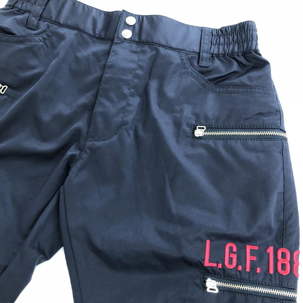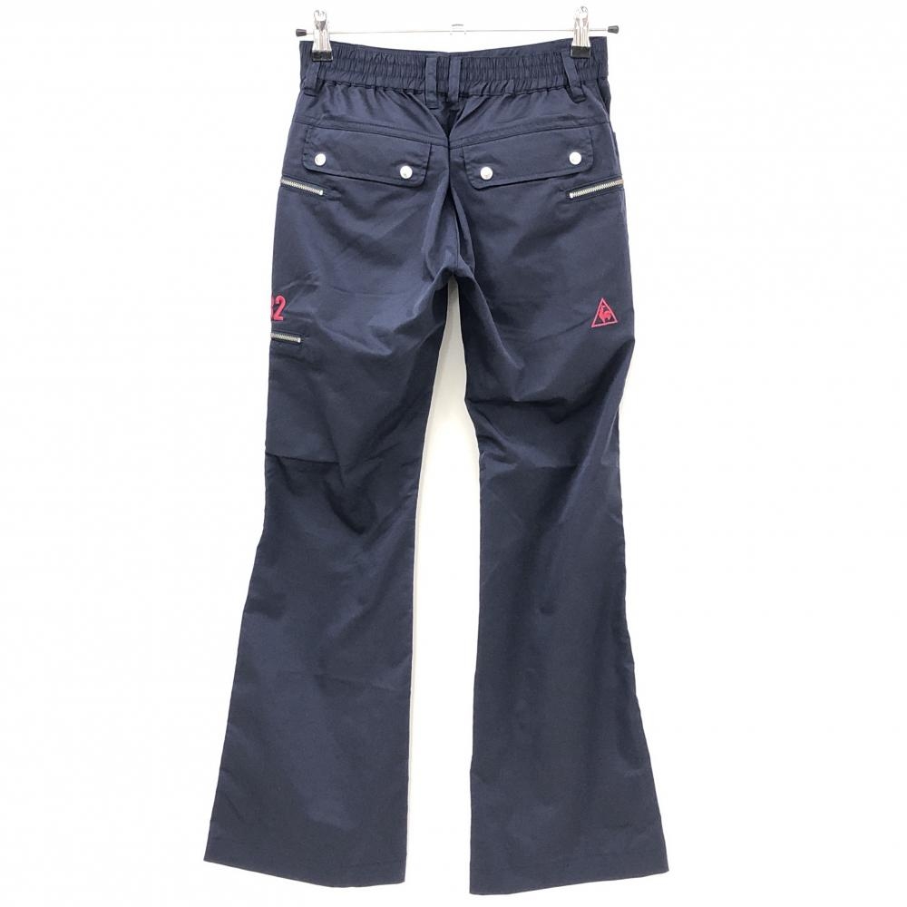【超美品】ルコックゴルフ パンツ ネイビー ロゴ刺しゅうピンク レディース 7 ゴルフウェア le coq sportif