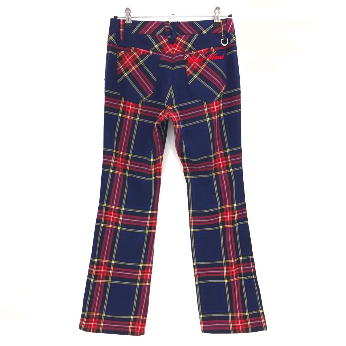 【超美品】ビバハート パンツ ネイビー×レッド チェック 秋冬 レディース 40(M) ゴルフウェア VIVA HEART