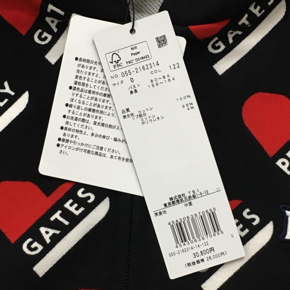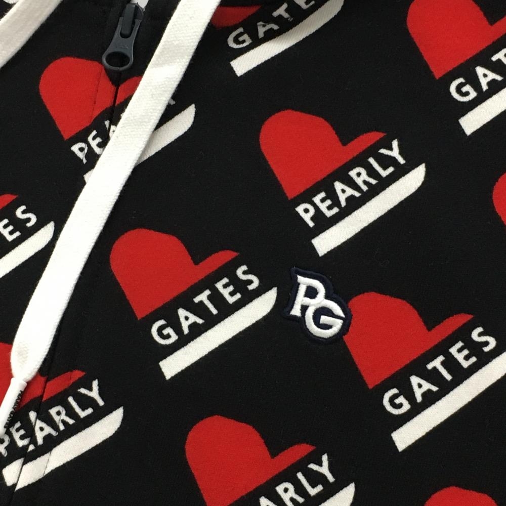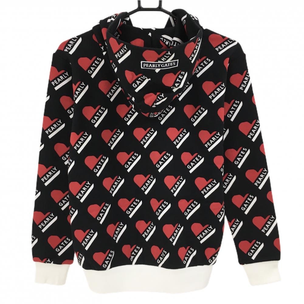 【新品】パーリーゲイツ ジップパーカー 黒×レッド ハートロゴ総柄 胸元刺しゅう レディース 0(S) ゴルフウェア PEARLY GATES