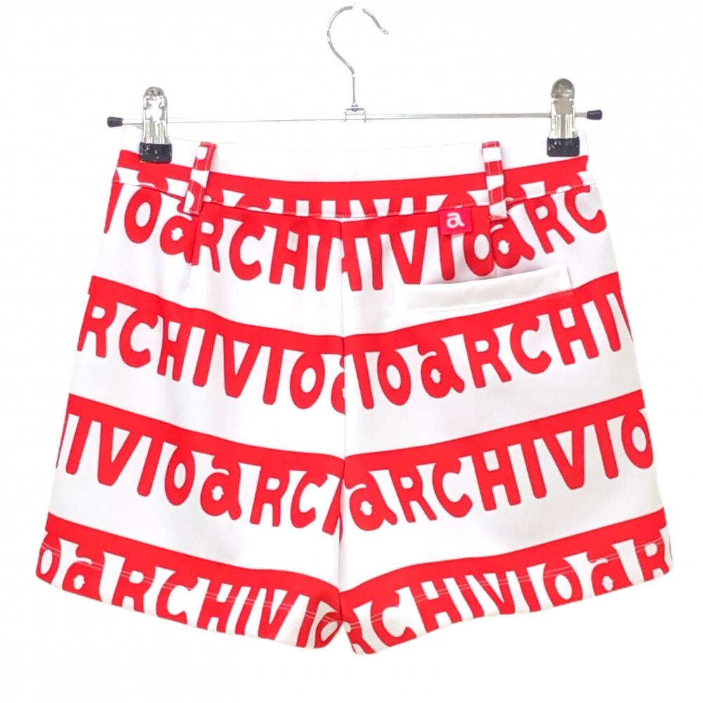 【美品】アルチビオ ショートパンツ 白×レッド ロゴボーダー レディース 36(S) ゴルフウェア 2023年モデル archivio