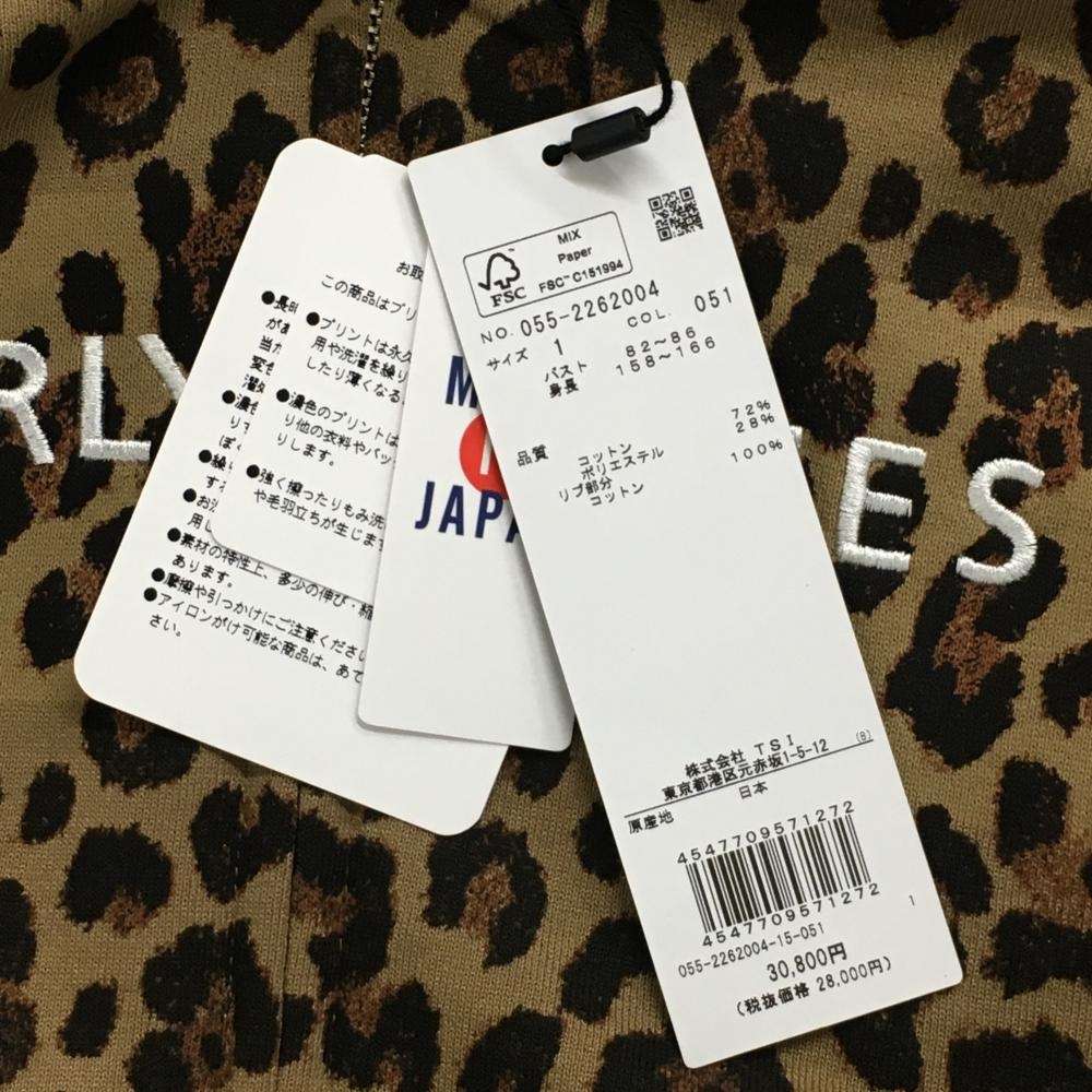 【新品】パーリーゲイツ ジップパーカー ライトブラウン×ブラウン レオパード ロゴ刺しゅう レディース 1(M) ゴルフウェア PEARLY GATES