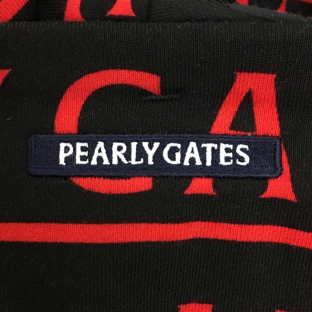 【新品】パーリーゲイツ ジップパーカー 黒×レッド ロゴ総柄 胸元刺しゅう レディース 0(S) ゴルフウェア PEARLY GATES