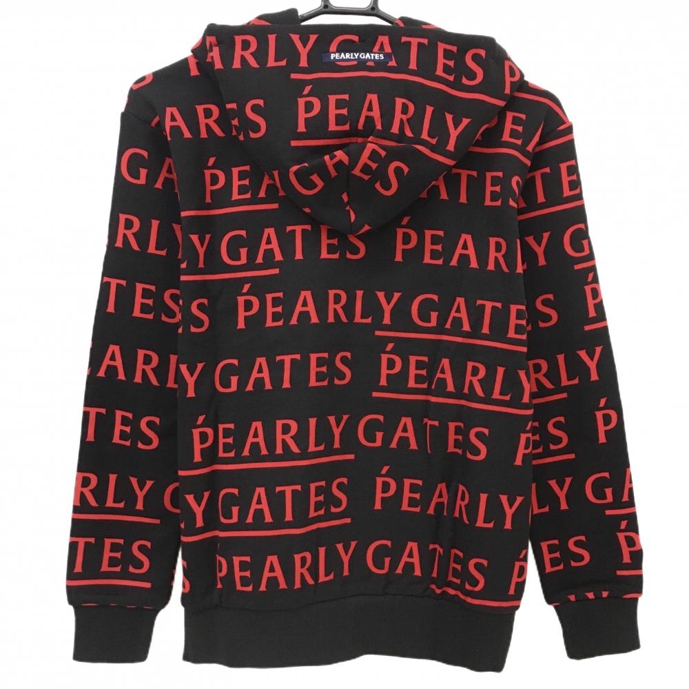 【新品】パーリーゲイツ ジップパーカー 黒×レッド ロゴ総柄 胸元刺しゅう レディース 0(S) ゴルフウェア PEARLY GATES