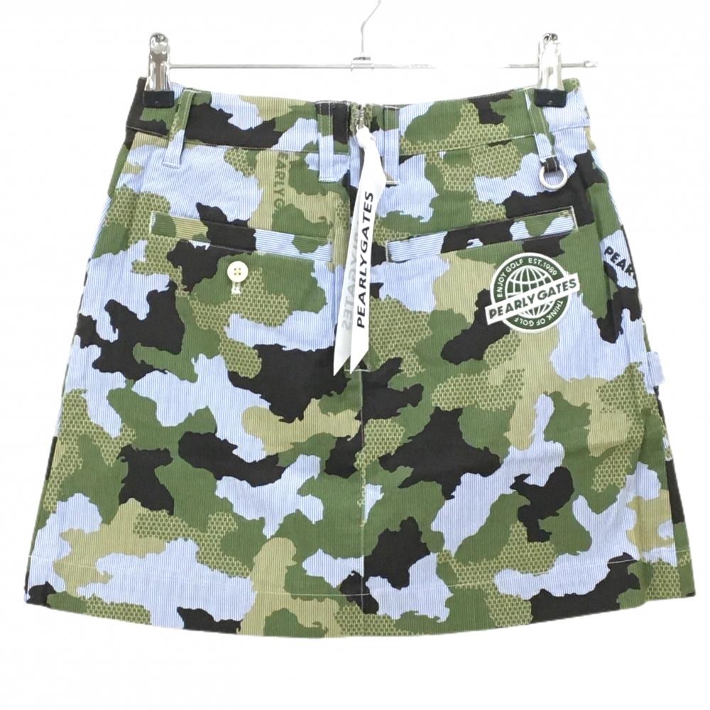 【新品】パーリーゲイツ スカート ブルー×白×カーキ カモフラ調 迷彩 ストライプ レディース 00(XS) ゴルフウェア PEARLY GATES
