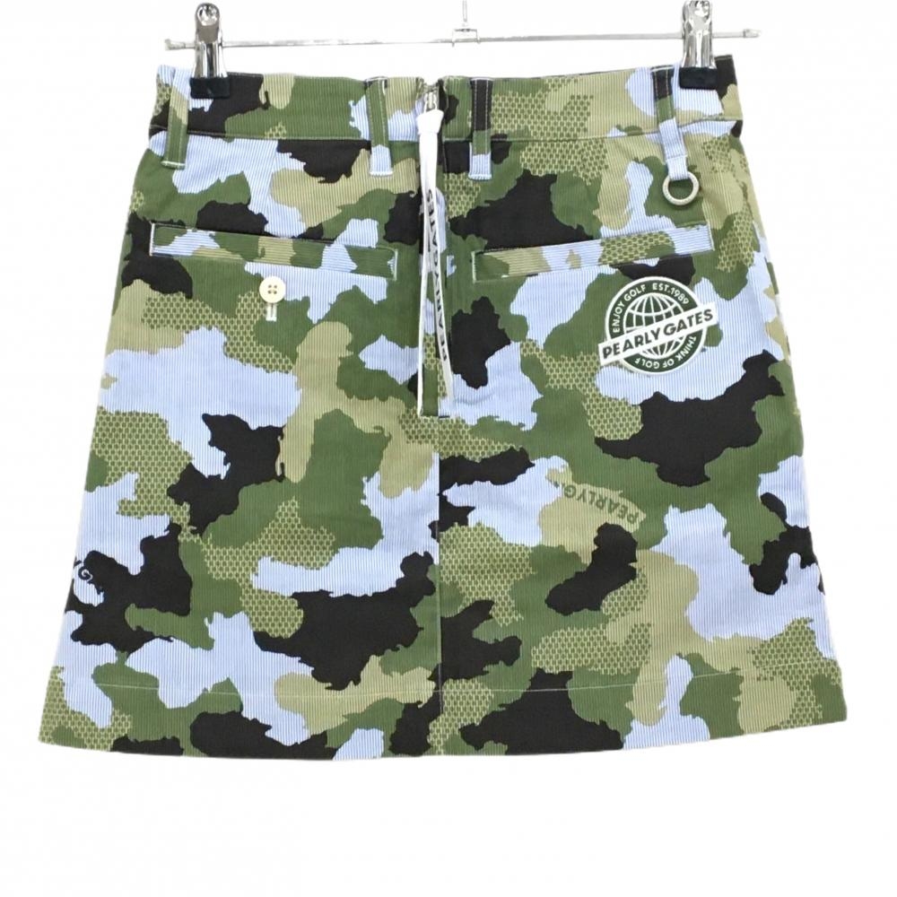 【新品】パーリーゲイツ スカート ブルー×白×カーキ カモフラ調 迷彩 ストライプ レディース 00(XS) ゴルフウェア PEARLY GATES
