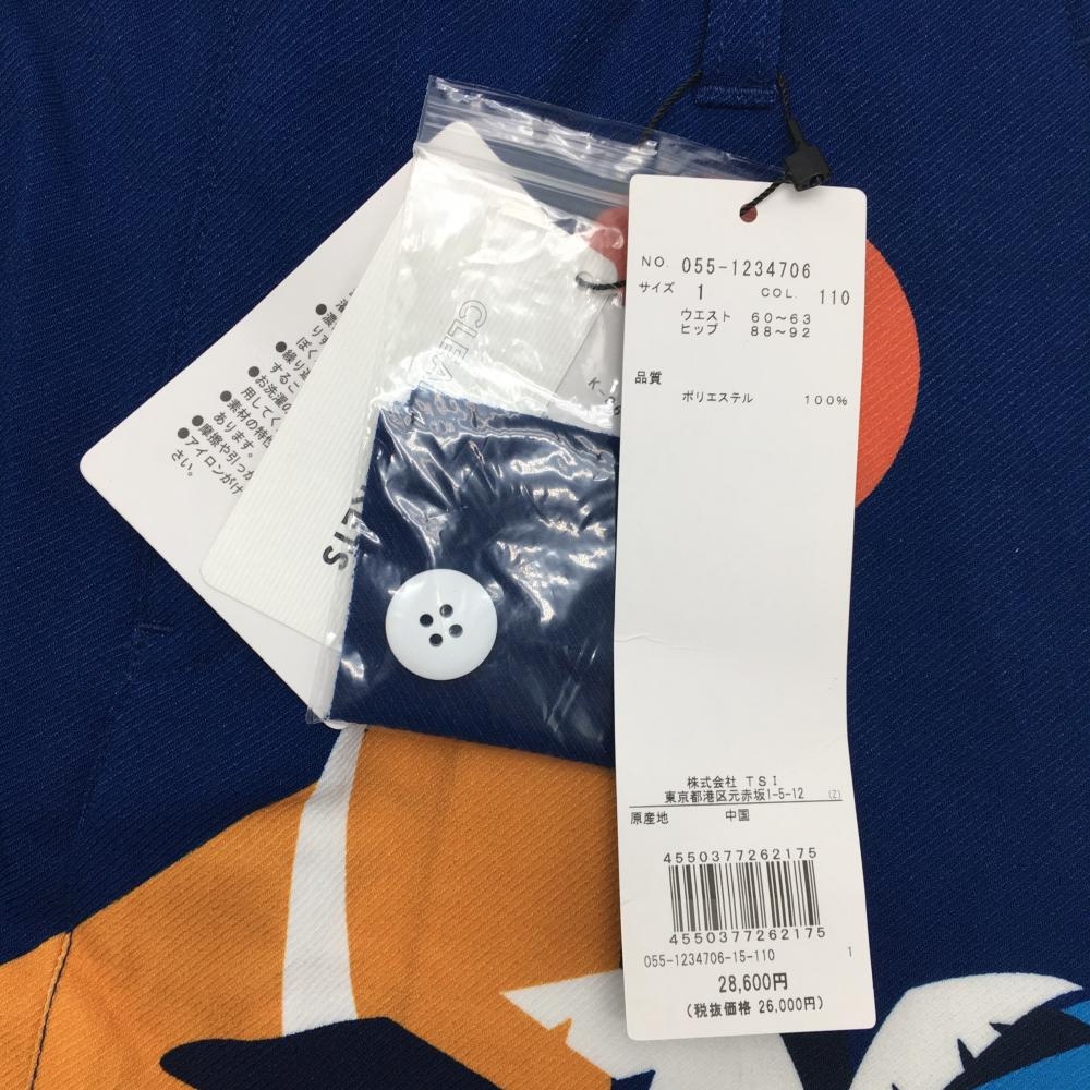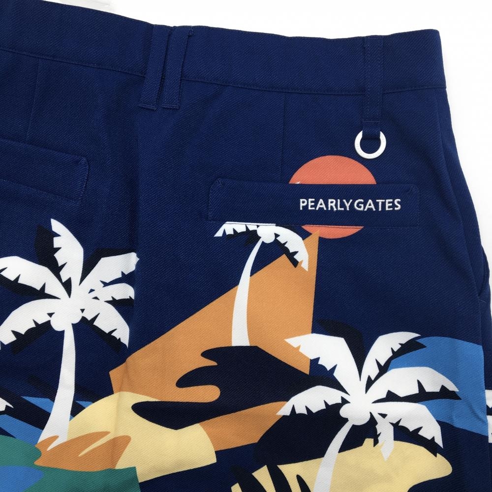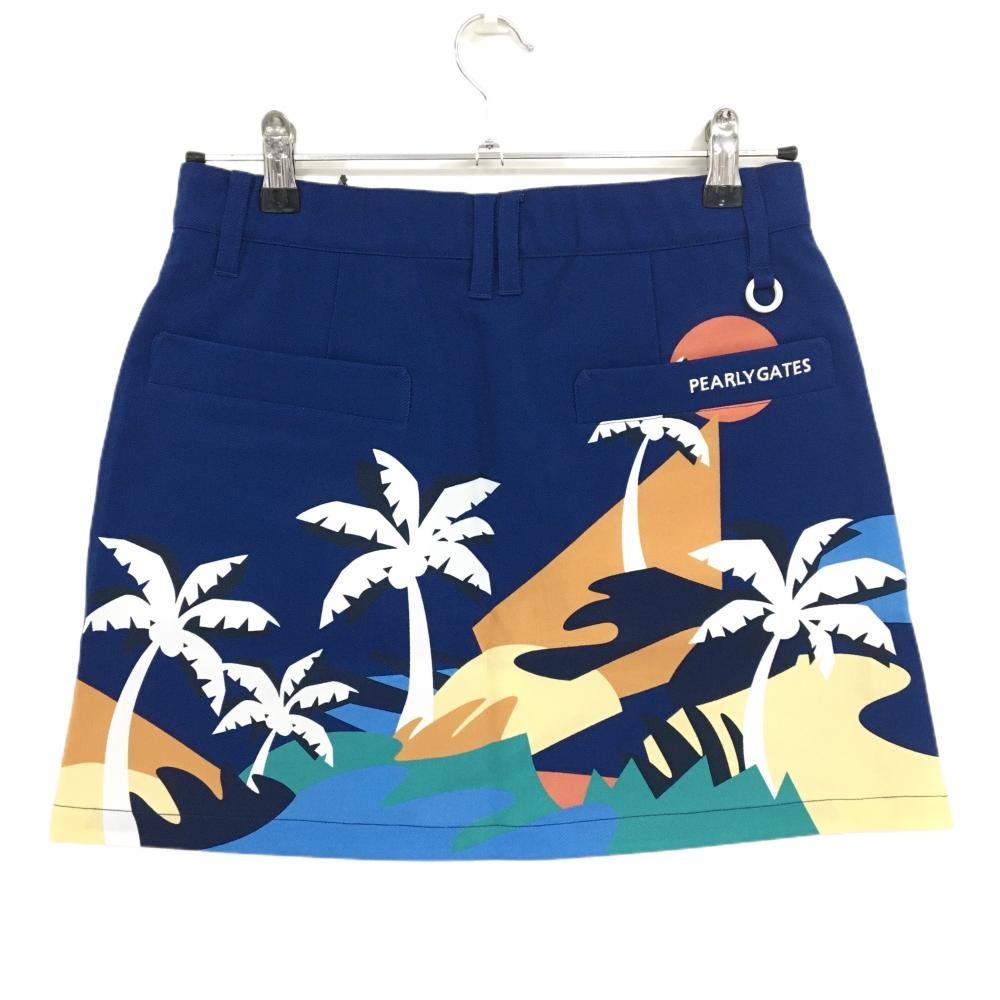 【新品】パーリーゲイツ スカート ネイビー×マルチカラー ヤシの木柄 ロゴ刺しゅう レディース 1(M) ゴルフウェア PEARLY GATES