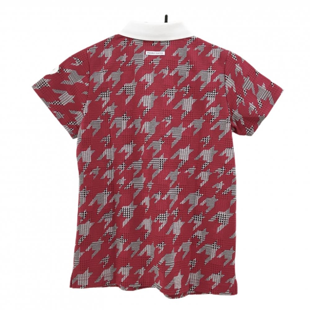 【新品】パーリーゲイツ 半袖ポロシャツ 白×ピンク 千鳥柄 襟裏ライン ロゴ刺しゅう レディース 0(S) ゴルフウェア PEARLY GATES