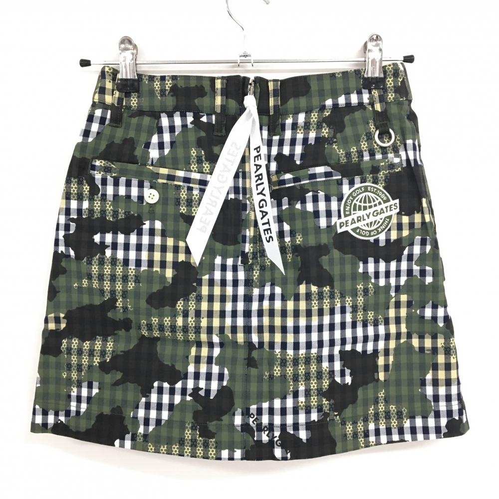 【新品】パーリーゲイツ スカート 白×ネイビー×カーキ カモフラ調 迷彩 チェック レディース 00(XS) ゴルフウェア PEARLY GATES