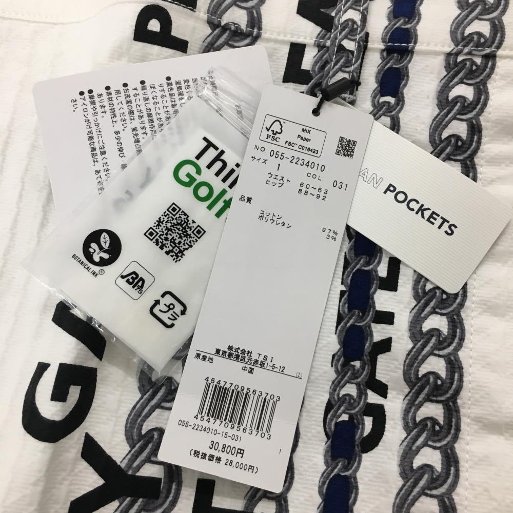 【新品】パーリーゲイツ スカート 白×グレー チェーン柄 織生地 レディース 1(M) ゴルフウェア PEARLY GATES