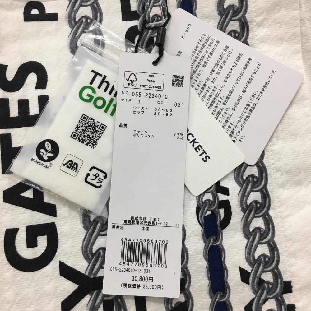 【新品】パーリーゲイツ スカート 白×グレー チェーン柄 織生地 レディース 1(M) ゴルフウェア PEARLY GATES