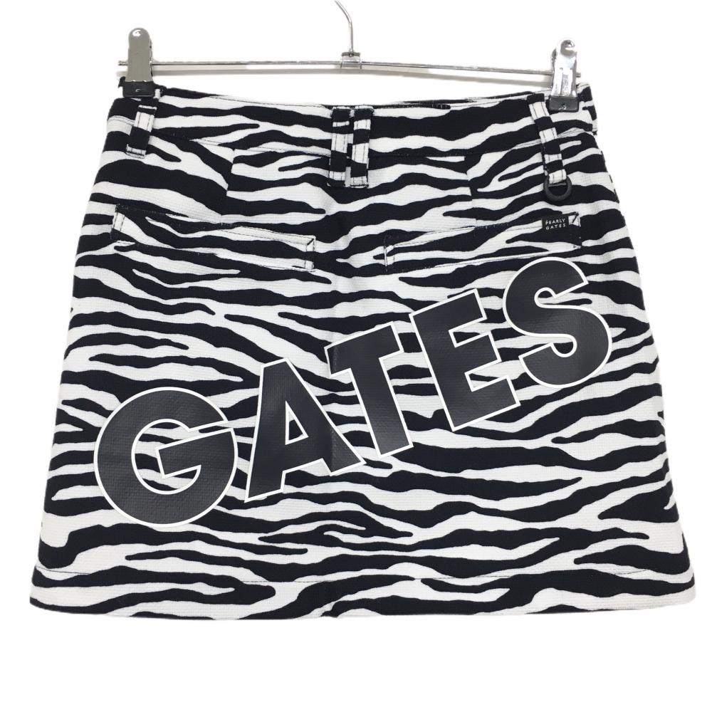 【新品】パーリーゲイツ スカート 白×ダークネイビー ゼブラ柄 ビッグロゴプリント レディース 0(S) ゴルフウェア PEARLY GATES