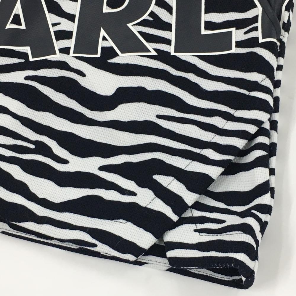 【新品】パーリーゲイツ スカート 白×ダークネイビー ゼブラ柄 ビッグロゴプリント レディース 0(S) ゴルフウェア PEARLY GATES