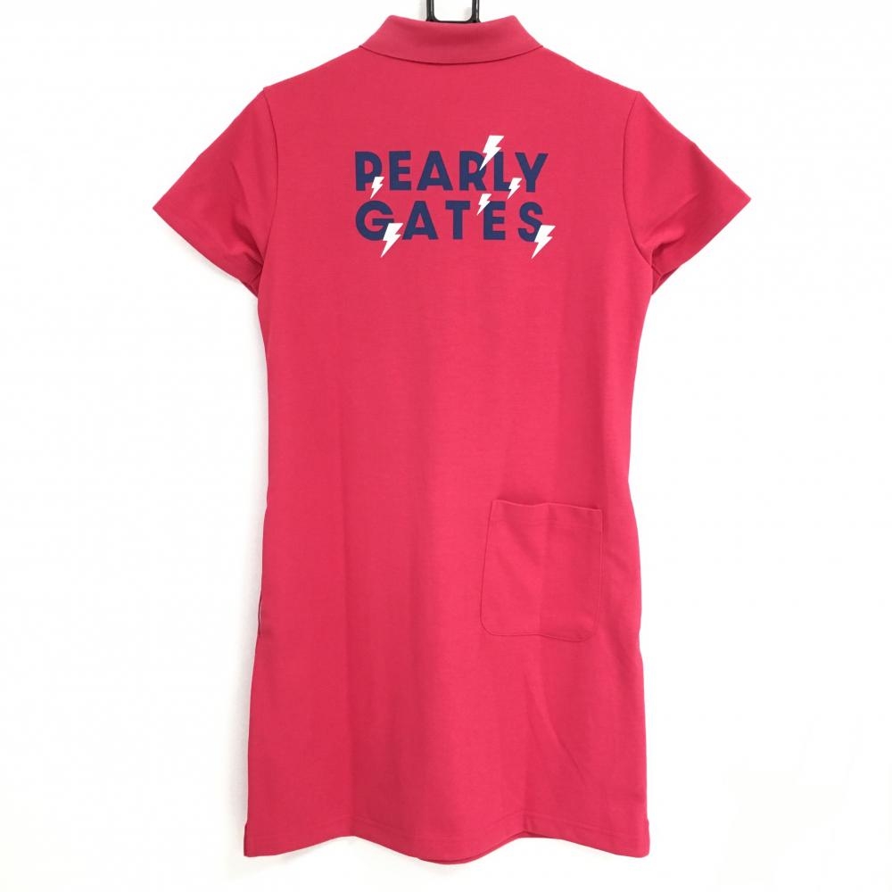 【新品】パーリーゲイツ 半袖ポロワンピース ピンク×ネイビー 感電ニコちゃん ロゴ刺しゅう レディース 1(M) ゴルフウェア PEARLY GATES