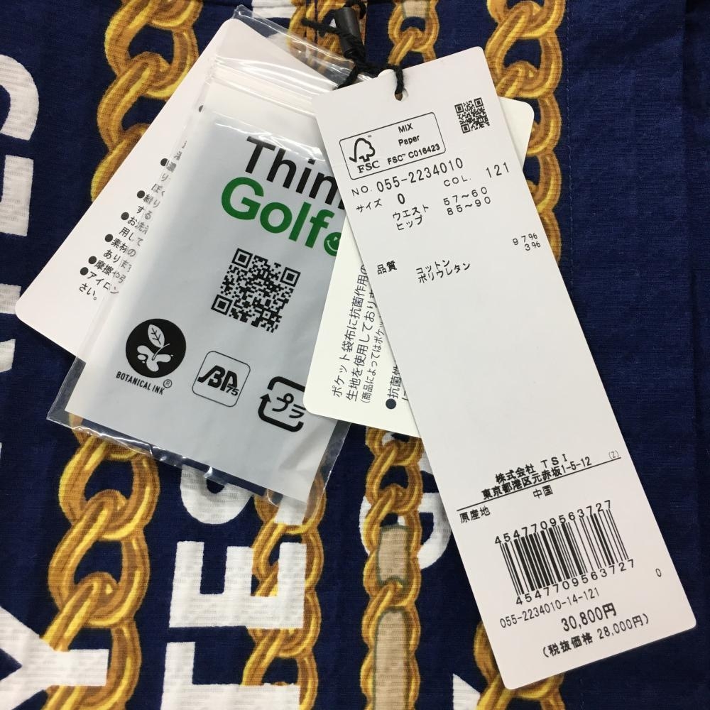 【新品】パーリーゲイツ スカート ネイビー×ゴールド チェーン柄 凸凹生地 サイドファスナー レディース 0(S) ゴルフウェア PEARLY GATES