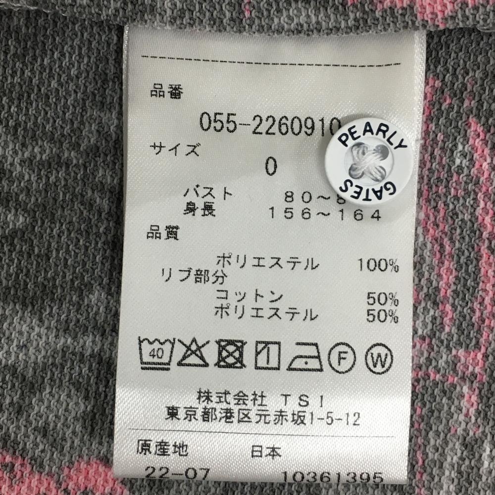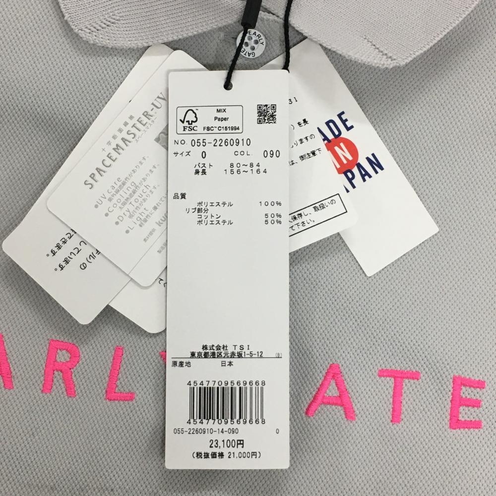 【新品】パーリーゲイツ 半袖ポロシャツ グレー×ピンク 絵 丸襟 ロゴ刺しゅう レディース 0(S) ゴルフウェア PEARLY GATES