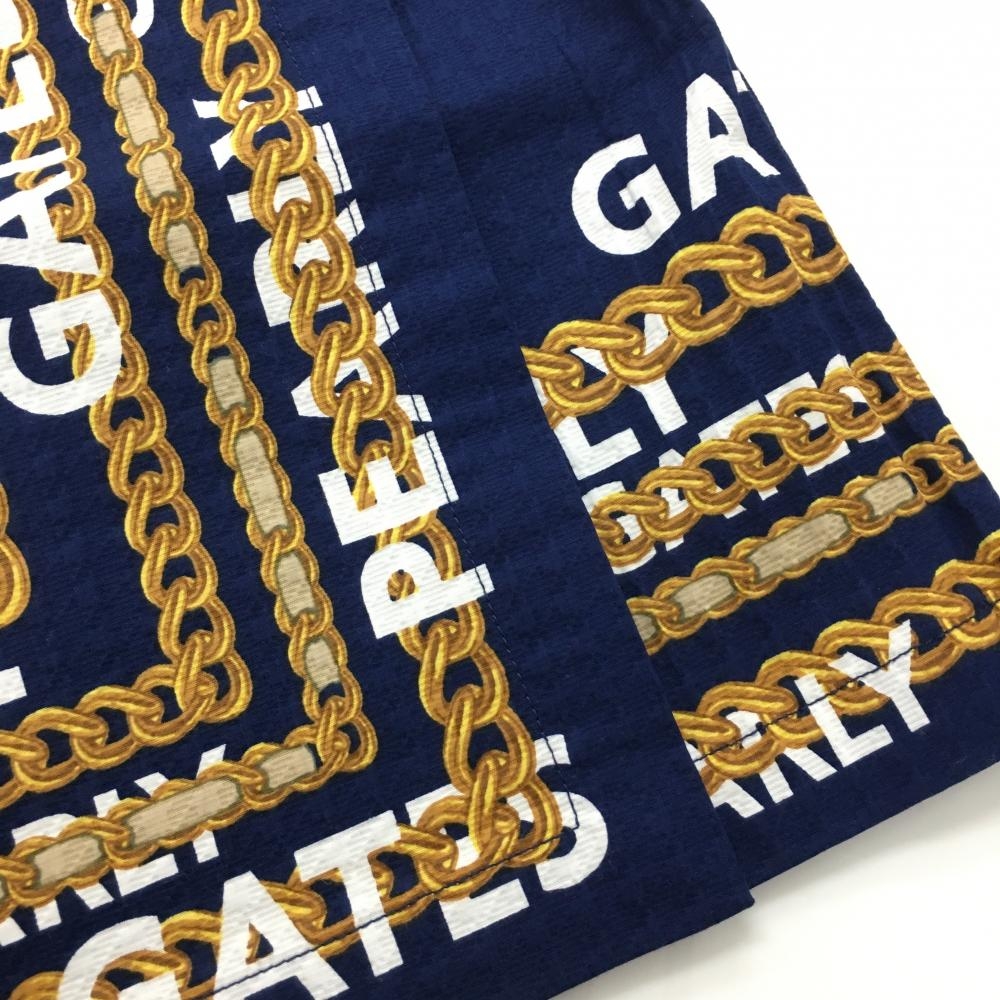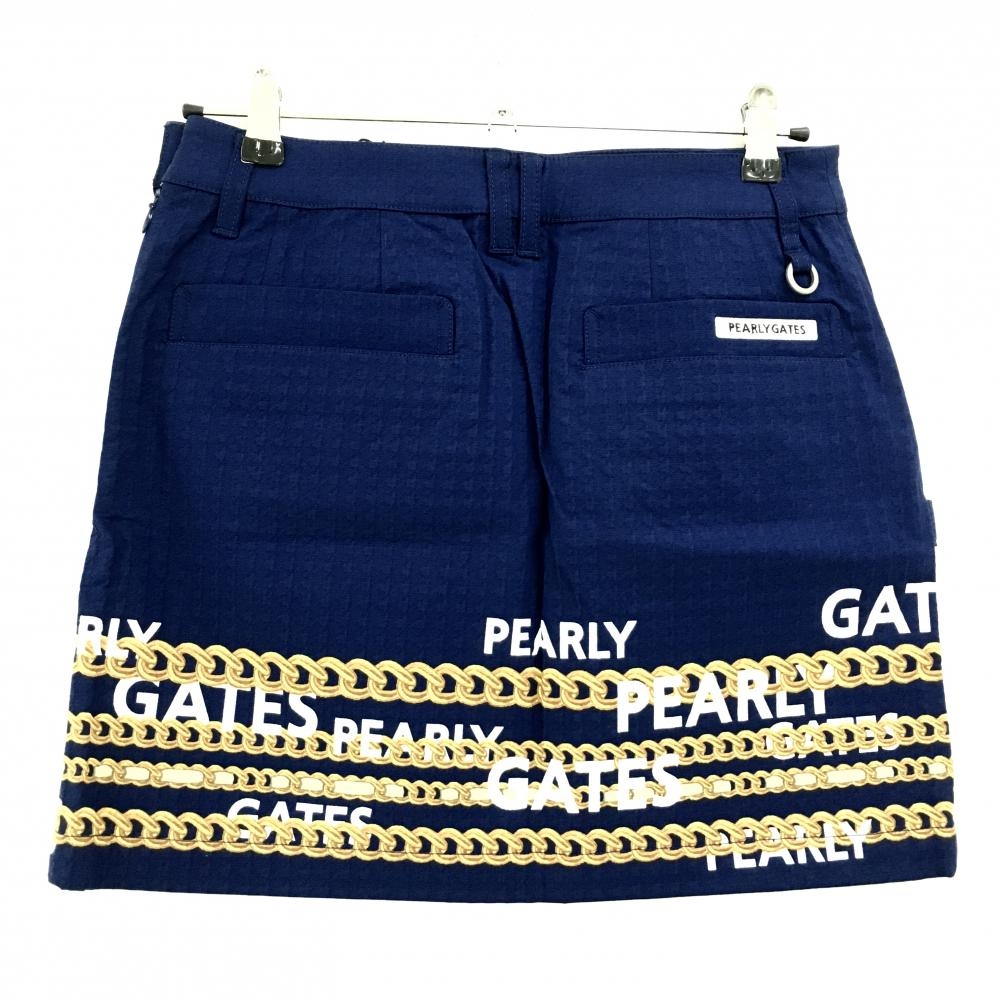 【新品】パーリーゲイツ スカート ネイビー×ゴールド チェーン柄 凸凹生地 サイドファスナー レディース 1(M) ゴルフウェア PEARLY GATES
