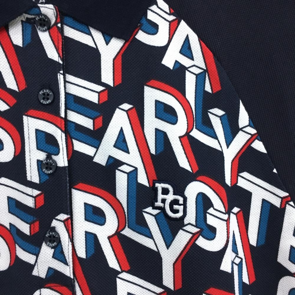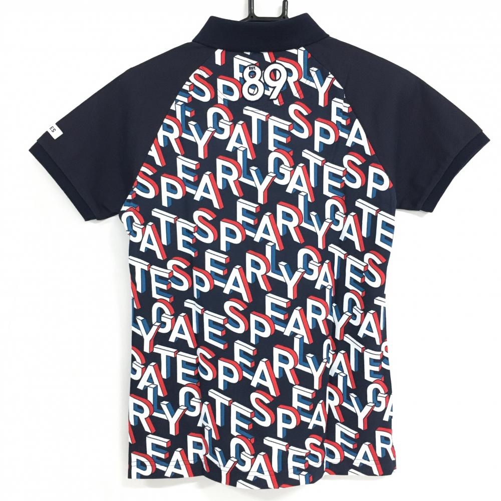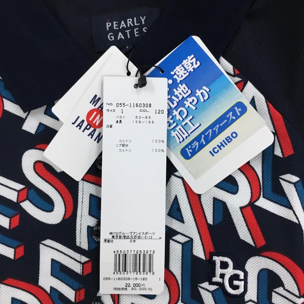 【新品】パーリーゲイツ 半袖ポロシャツ ダークネイビー×白 身頃ロゴ総柄 レディース 1(M) ゴルフウェア PEARLY GATES