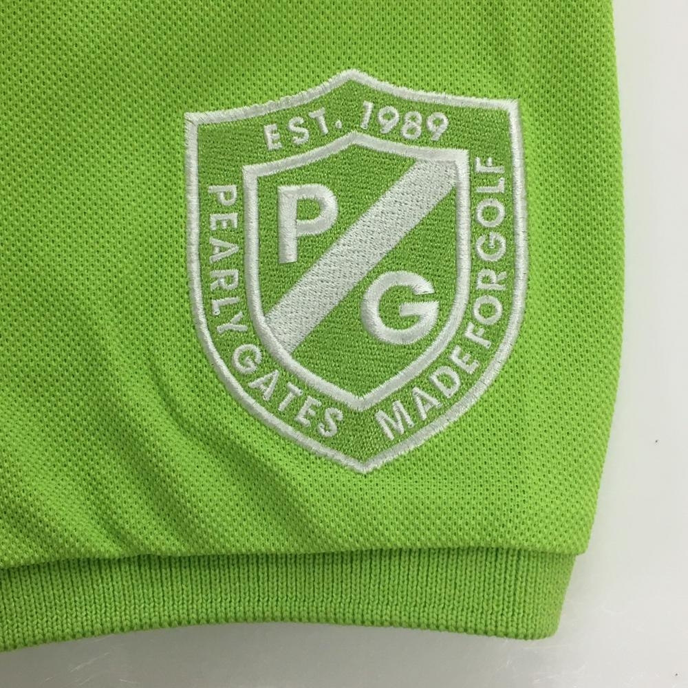 【新品】パーリーゲイツ 半袖ポロシャツ ライトグリーン×白 胸元ロゴプリント 襟裏ライン レディース 0(S) ゴルフウェア PEARLY GATES