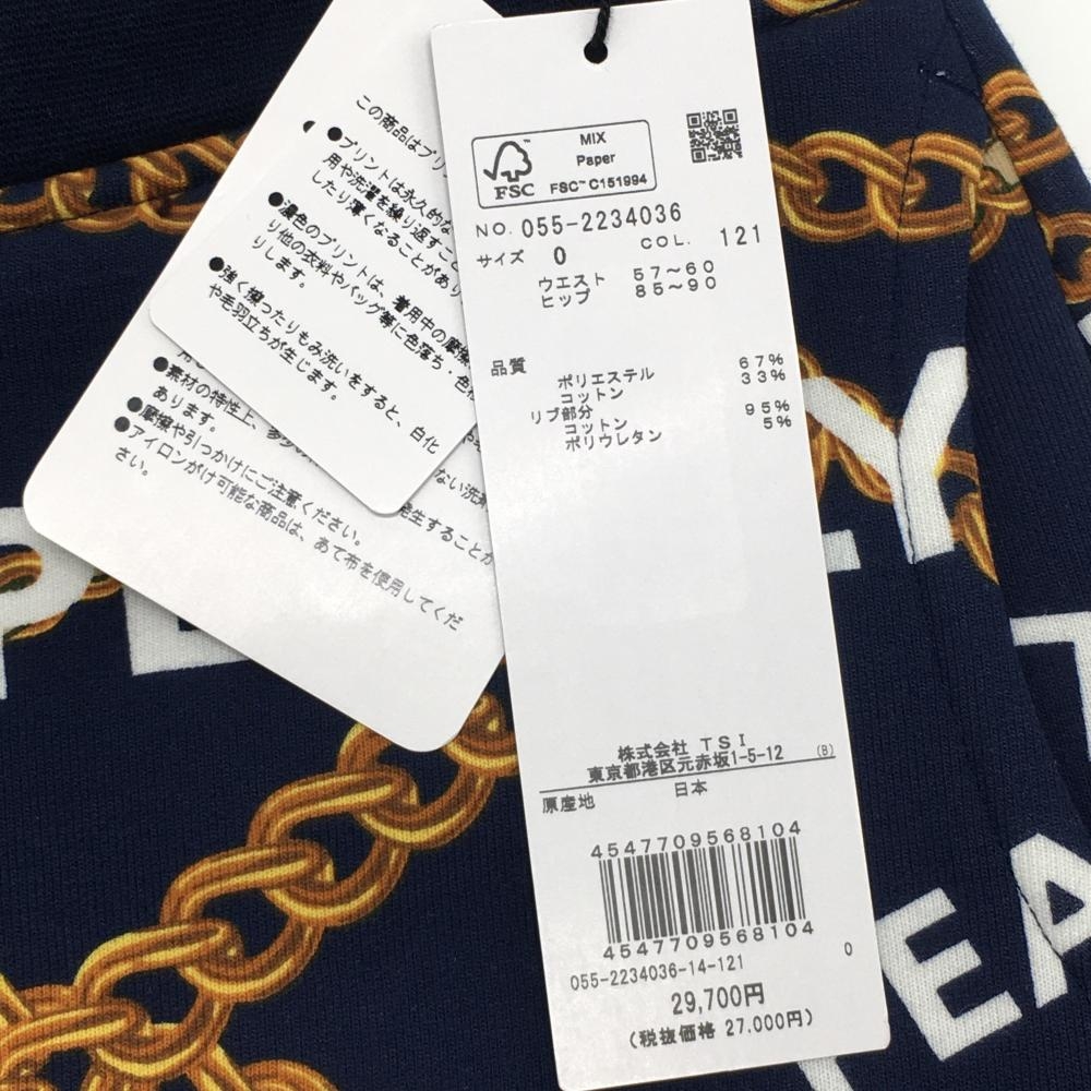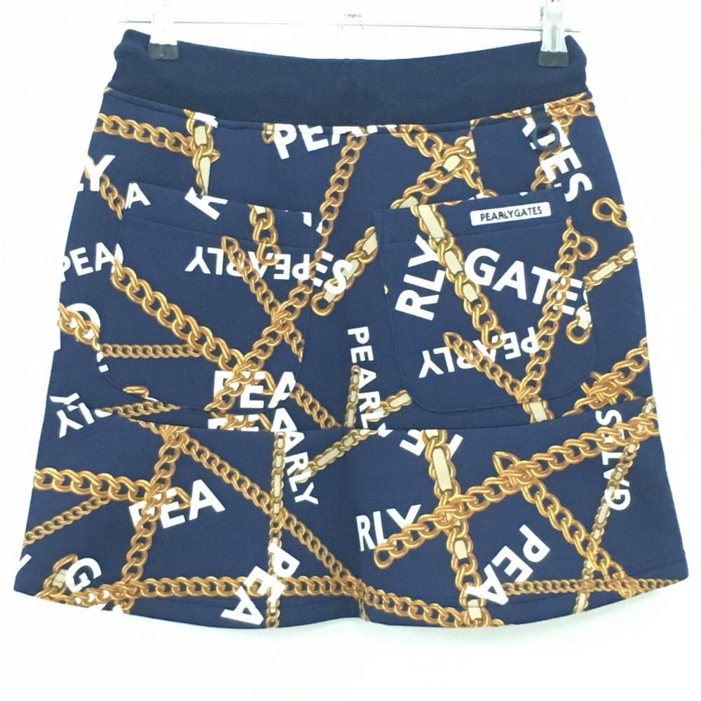 【新品】パーリーゲイツ スカート ネイビー×ゴールド チェーン柄 ウエストゴム 調節紐 レディース 0(S) ゴルフウェア PEARLY GATES