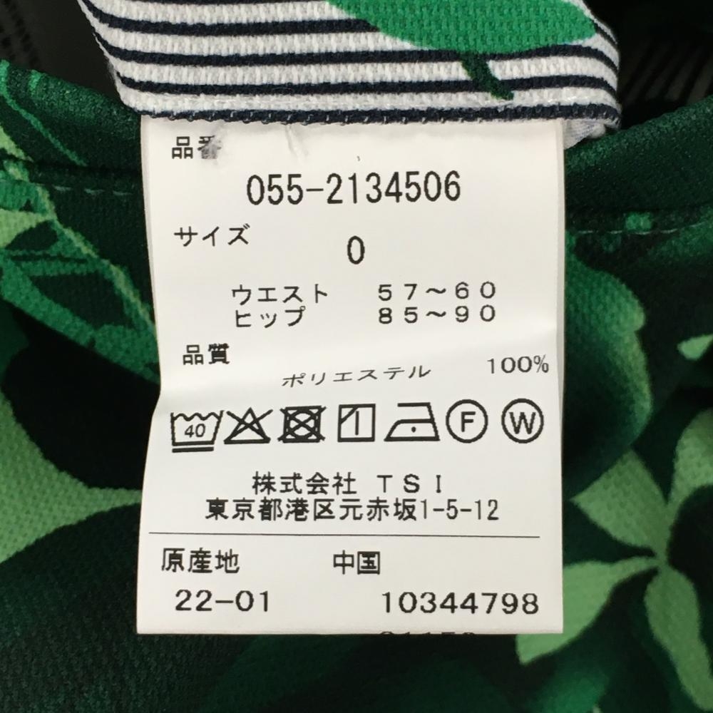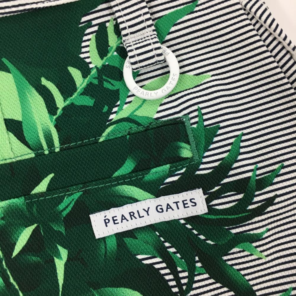 【新品】パーリーゲイツ スカート 白×ダークネイビー×グリーン リーフ柄 ボーダー レディース 0(S) ゴルフウェア PEARLY GATES