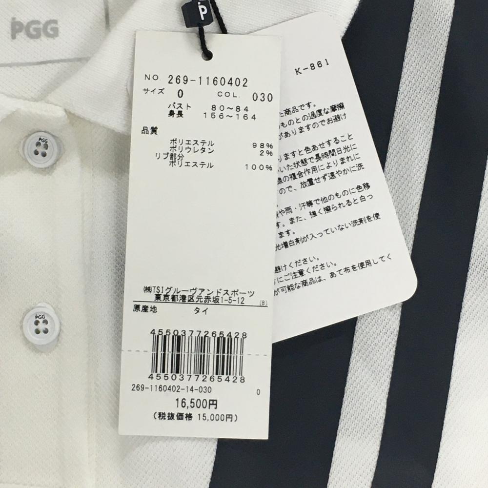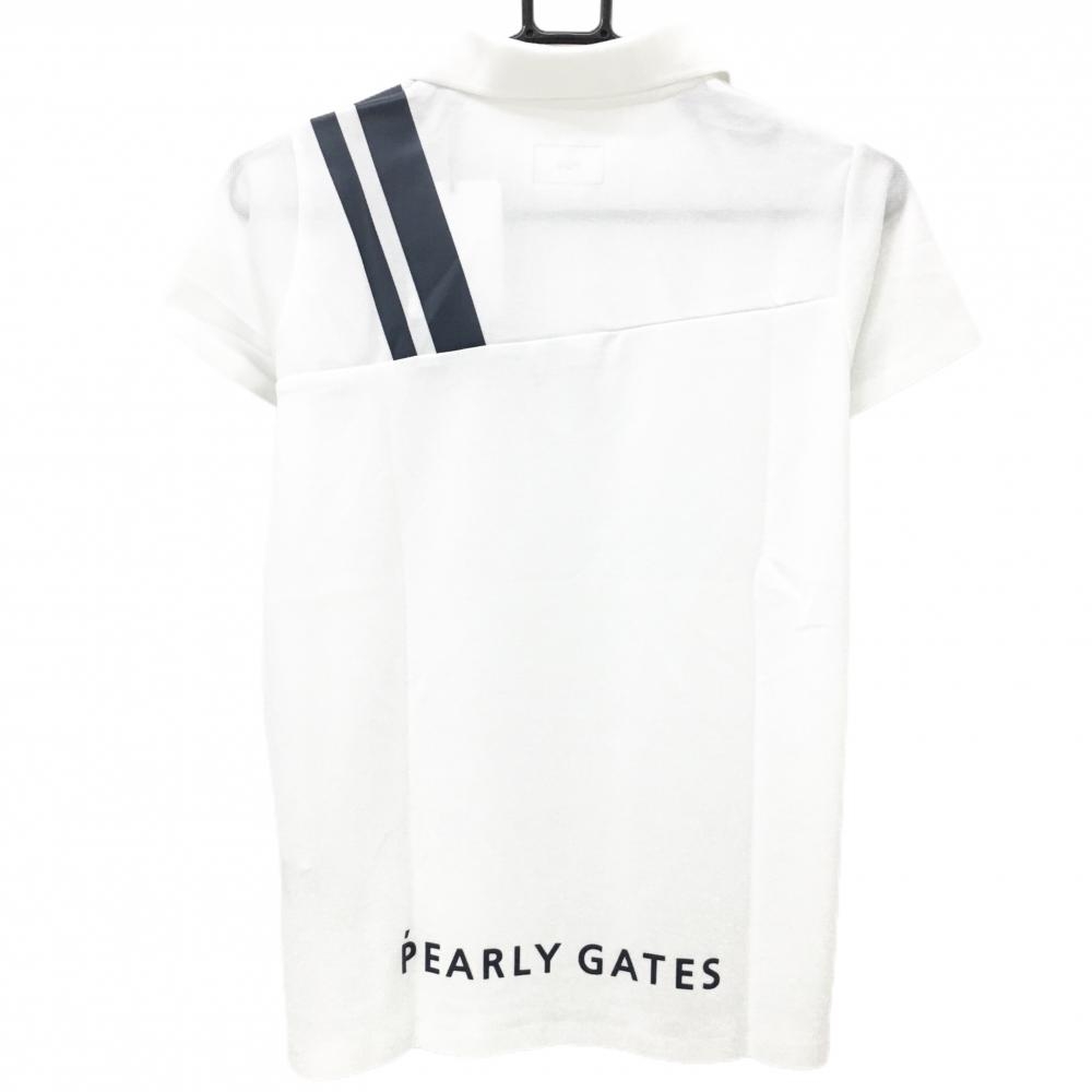 【新品】PGGパーリーゲイツ 半袖ポロシャツ 白×ネイビー 総柄 肩ライン レディース 0(S) ゴルフウェア PEARLY GATES