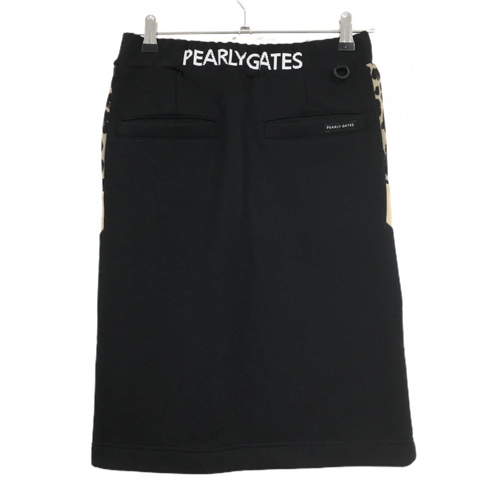 【新品】パーリーゲイツ スカート 黒×ベージュ 一部レオパード柄 ひざ丈 ウエストゴム 調節紐 レディース 0(S) ゴルフウェア PEARLY GATES