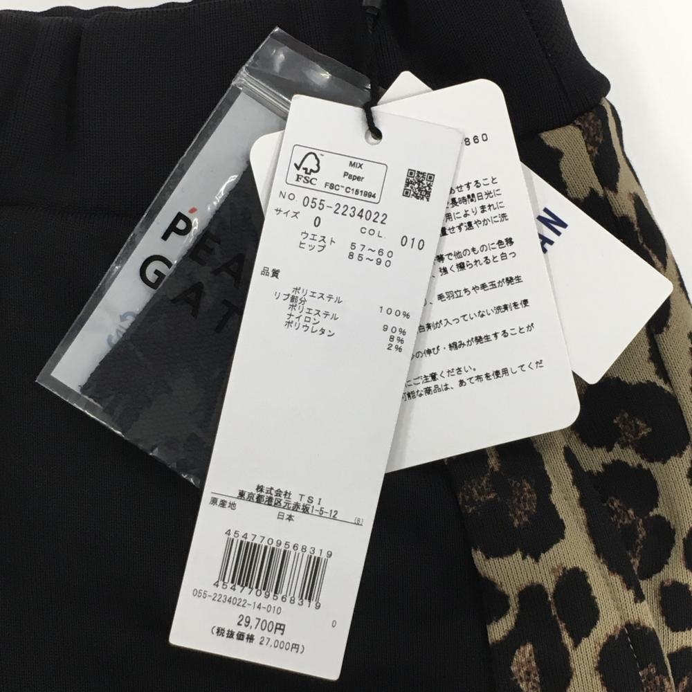 【新品】パーリーゲイツ スカート 黒×ベージュ 一部レオパード柄 ひざ丈 ウエストゴム 調節紐 レディース 0(S) ゴルフウェア PEARLY GATES