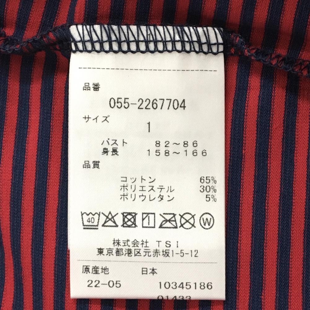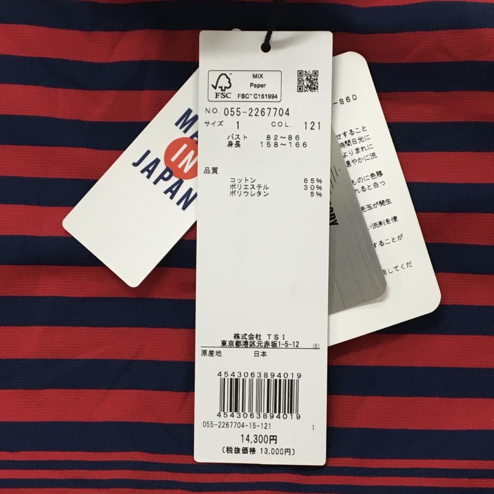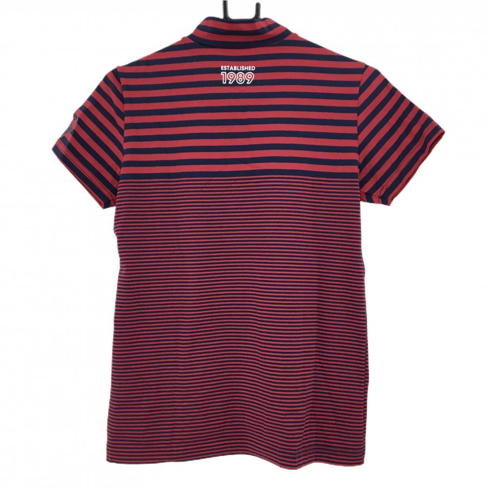 【新品】パーリーゲイツ 半袖ハイネックシャツ レッド×ネイビー ボーダー ロゴプリント レディース 1(M) ゴルフウェア PEARLY GATES