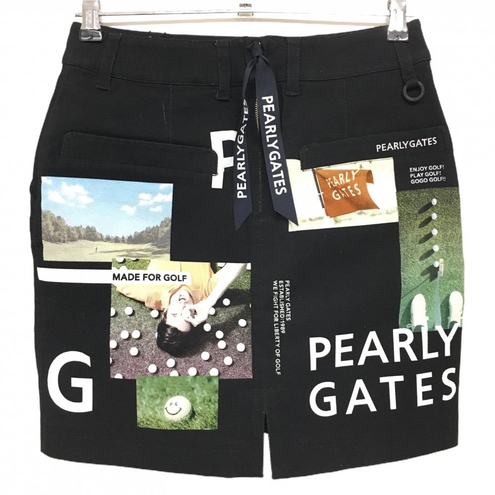 【新品】パーリーゲイツ スカート 黒×白 写真風 PGニコちゃん レディース 0(S) ゴルフウェア PEARLY GATES