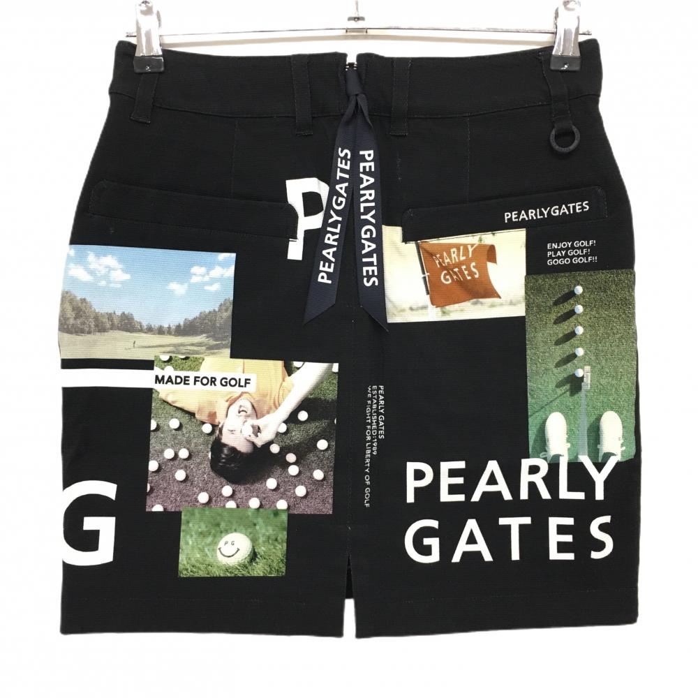【新品】パーリーゲイツ スカート 黒×白 写真風 PGニコちゃん レディース 0(S) ゴルフウェア PEARLY GATES