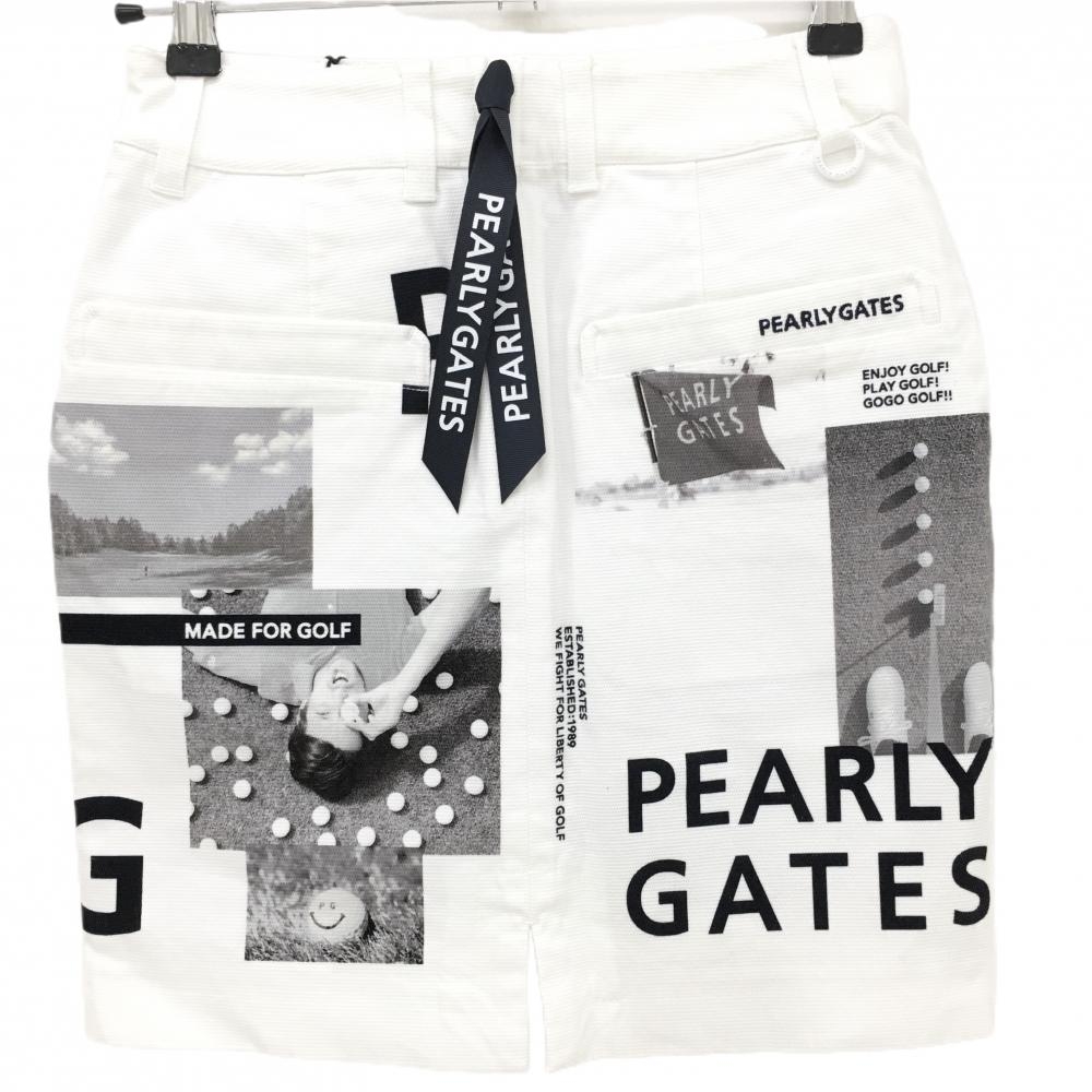 【新品】パーリーゲイツ スカート 白×グレー 写真風 PGニコちゃん バックファスナーリボン レディース 00(XS) ゴルフウェア PEARLY GATES