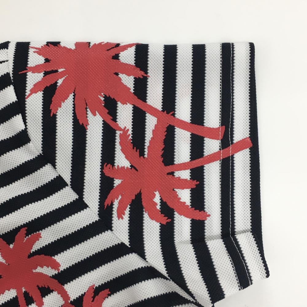 【新品】パーリーゲイツ 半袖ポロシャツ 白×ネイビー ボーダー ヤシの木プリント レディース 0(S) ゴルフウェア PEARLY GATES