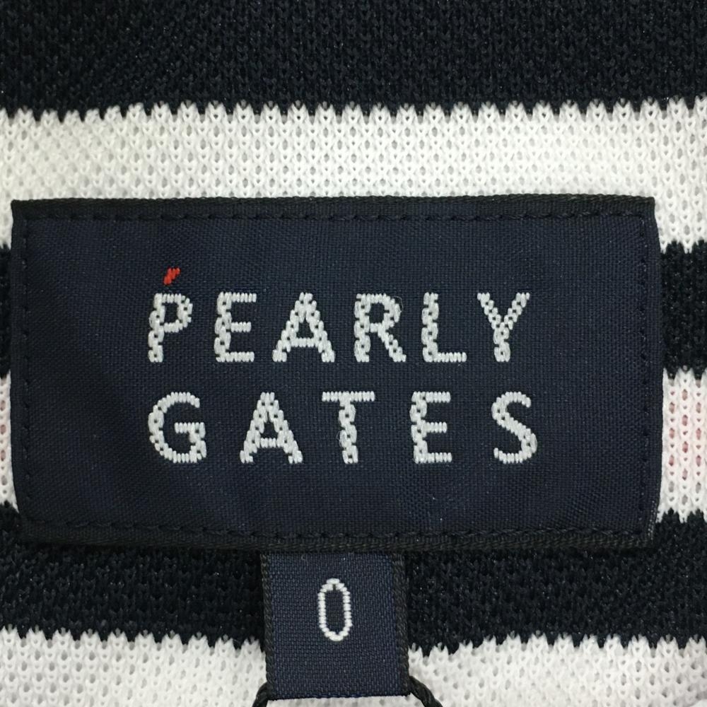 【新品】パーリーゲイツ 半袖ポロシャツ 白×ネイビー ボーダー ヤシの木プリント レディース 0(S) ゴルフウェア PEARLY GATES