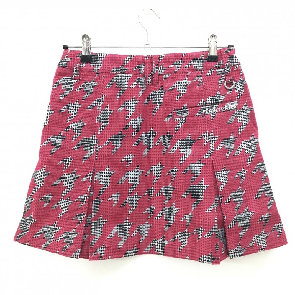 【新品】パーリーゲイツ ボックスプリーツスカート グレー×レッドピンク 千鳥柄 ロゴ白 レディース 0(S) ゴルフウェア PEARLY GATES