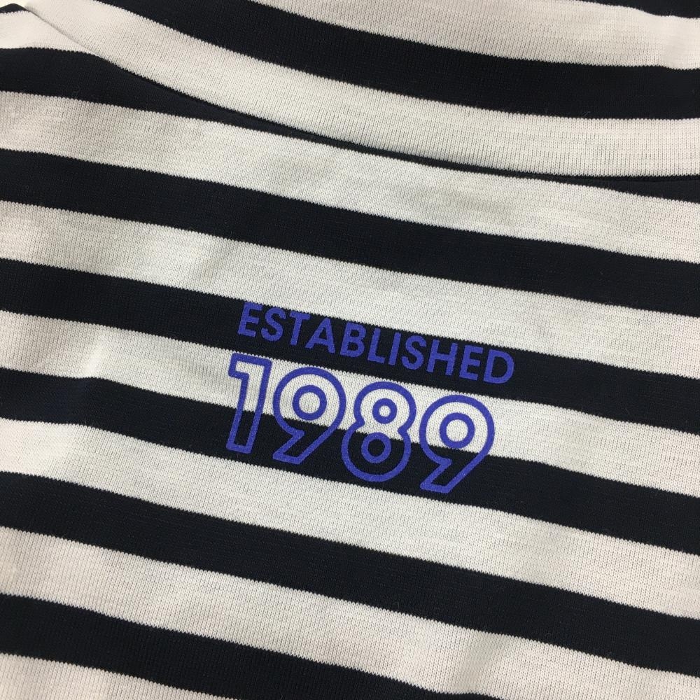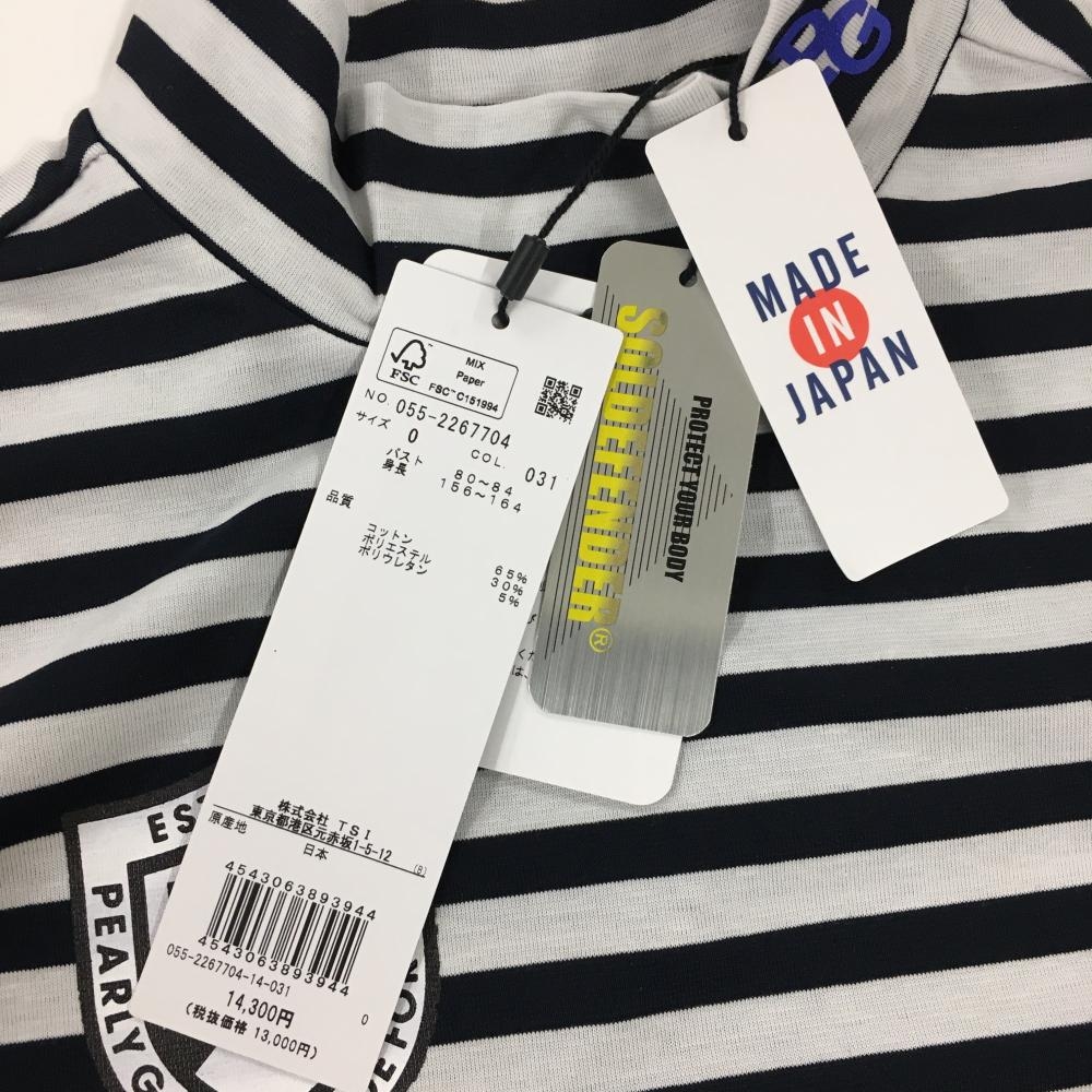 【新品】パーリーゲイツ 半袖ハイネックシャツ 白×ネイビー ボーダー ロゴプリント レディース 0(S) ゴルフウェア PEARLY GATES