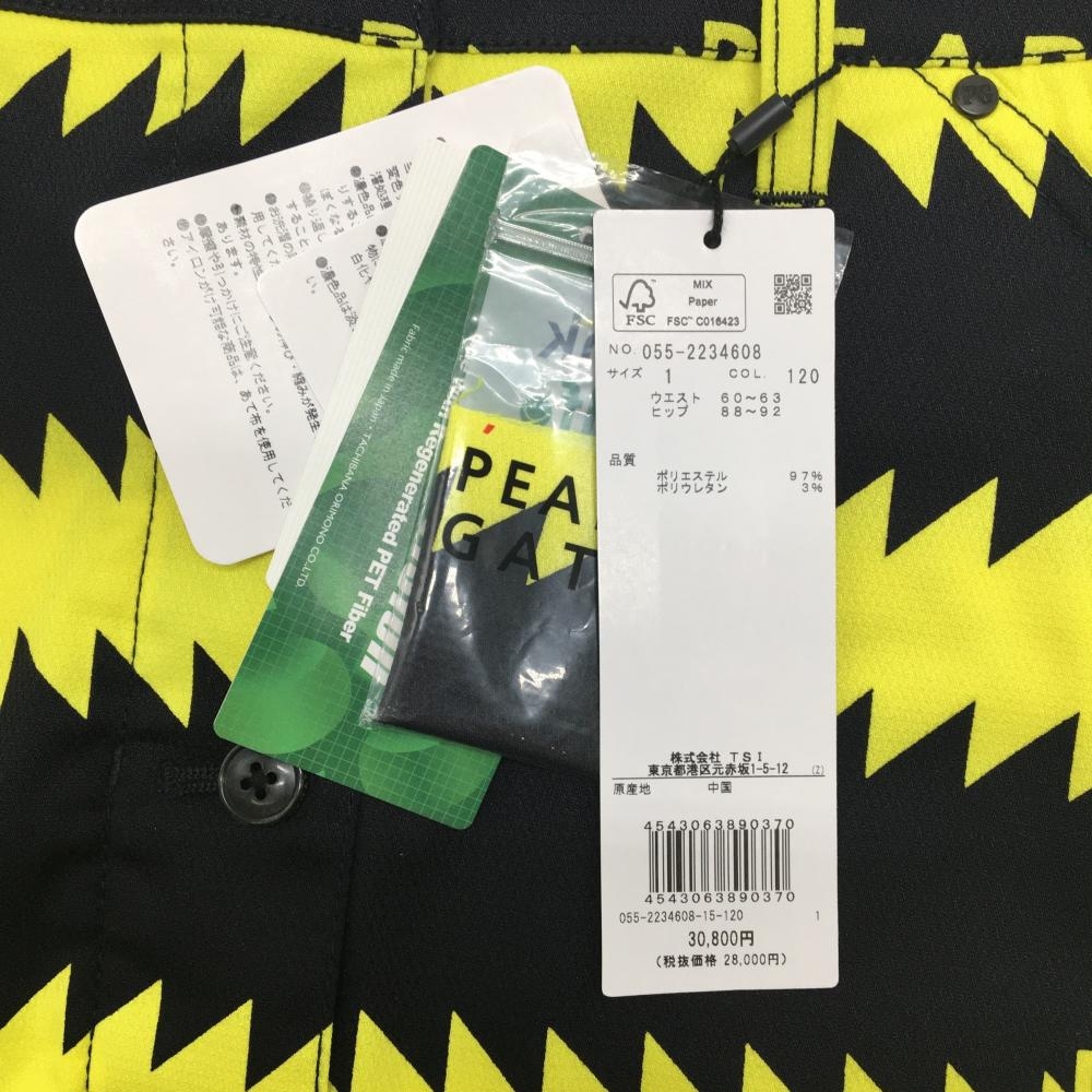 【新品】パーリーゲイツ スカート 黒×イエロー ギザギザボーダー フロントフェイクボタン レディース 1(M) ゴルフウェア PEARLY GATES